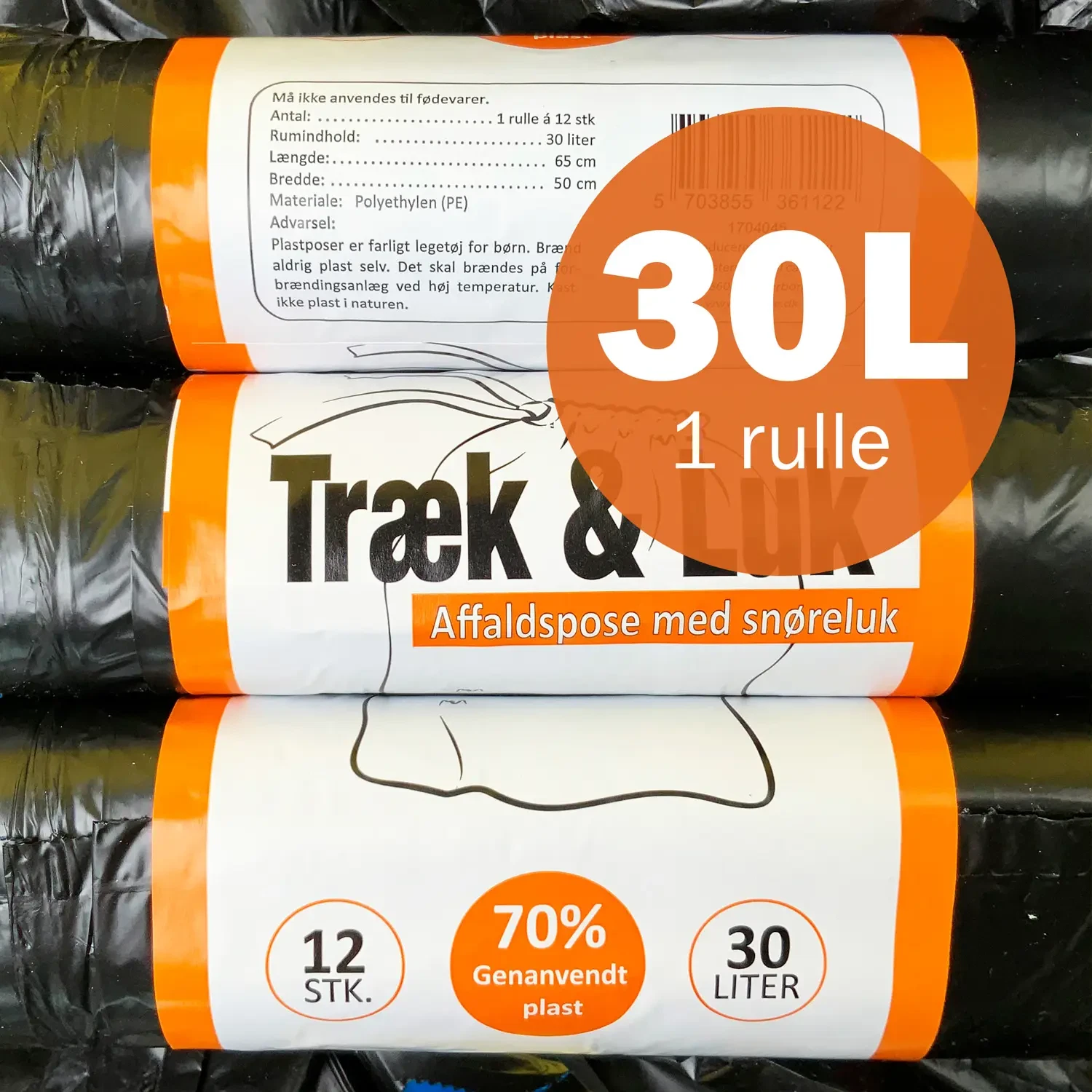 Affaldsposer med snøreluk 30 liter - 1 rulle med 12 poser (1,00 kr/pose)