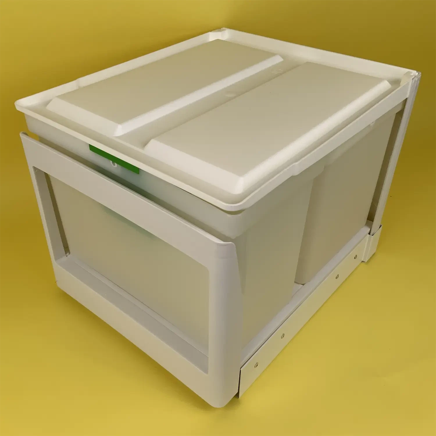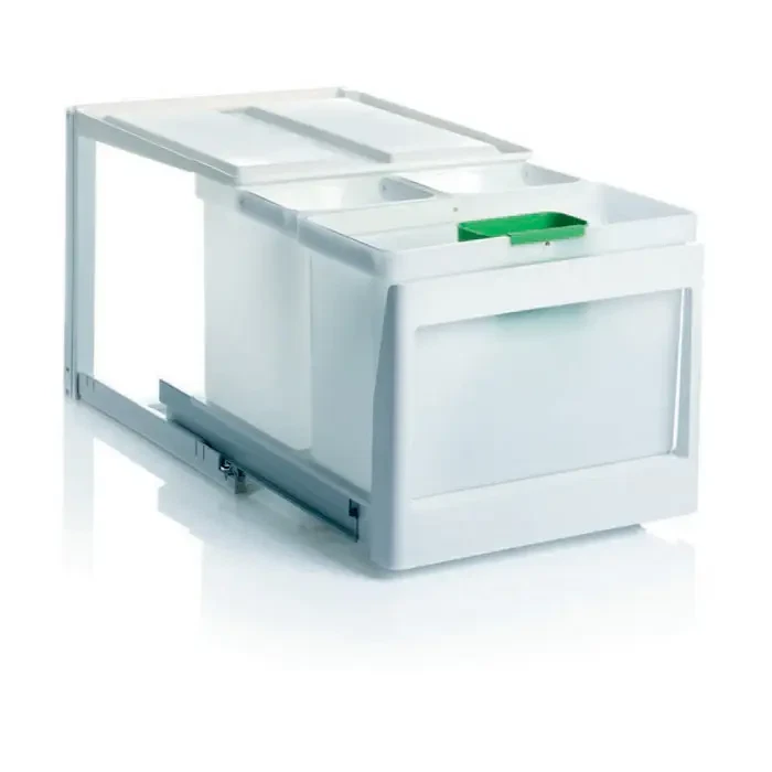 Affaldssystem Eico 3SK er med låg og skal monteres i bunden af skabet. Det er et velfungerende affaldssystem i de fleste hjem.
