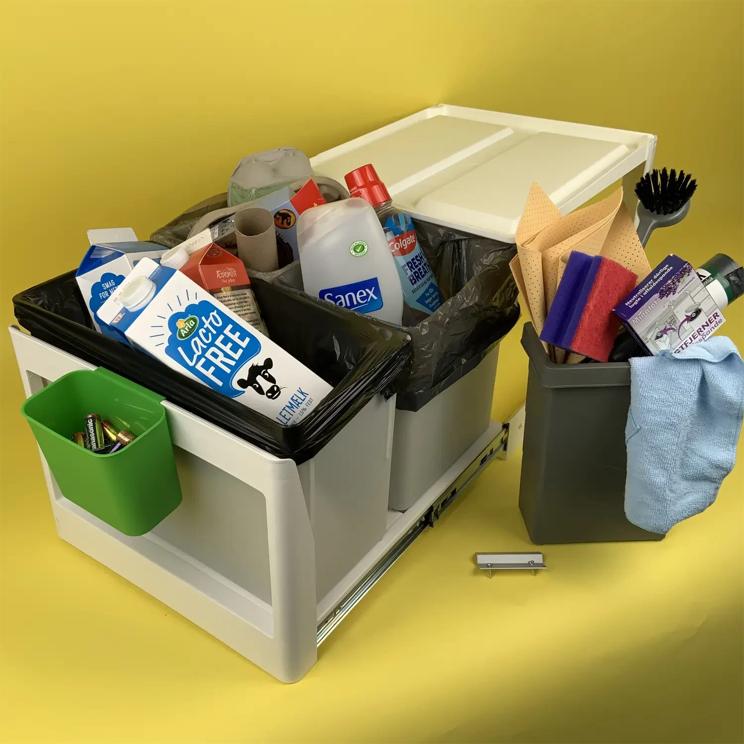 Affalds systemet er meget nem selv at installerer i skabet –  så bestil allerede i dag og få leveret indenfor1-4 dage.