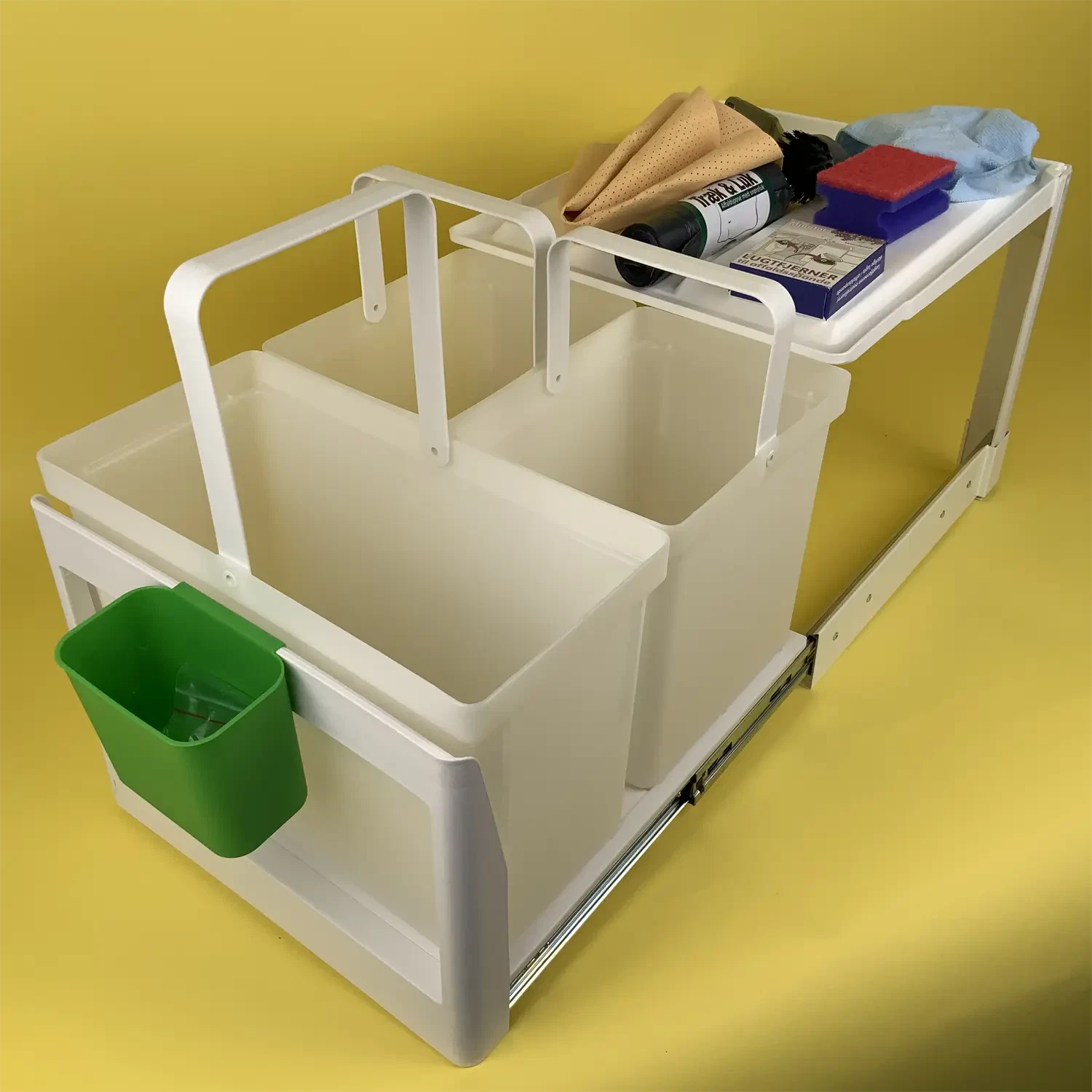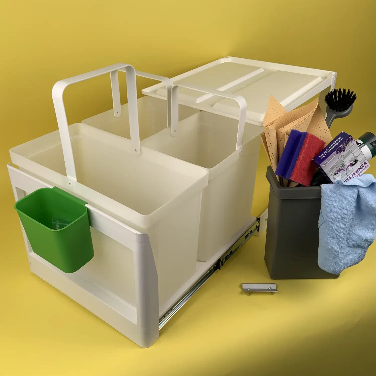 •    1stk  3 liters spand -  ønsker du at hænge spande op på indersiden af et skabe/låge kan du finde et ophængsbeslag her