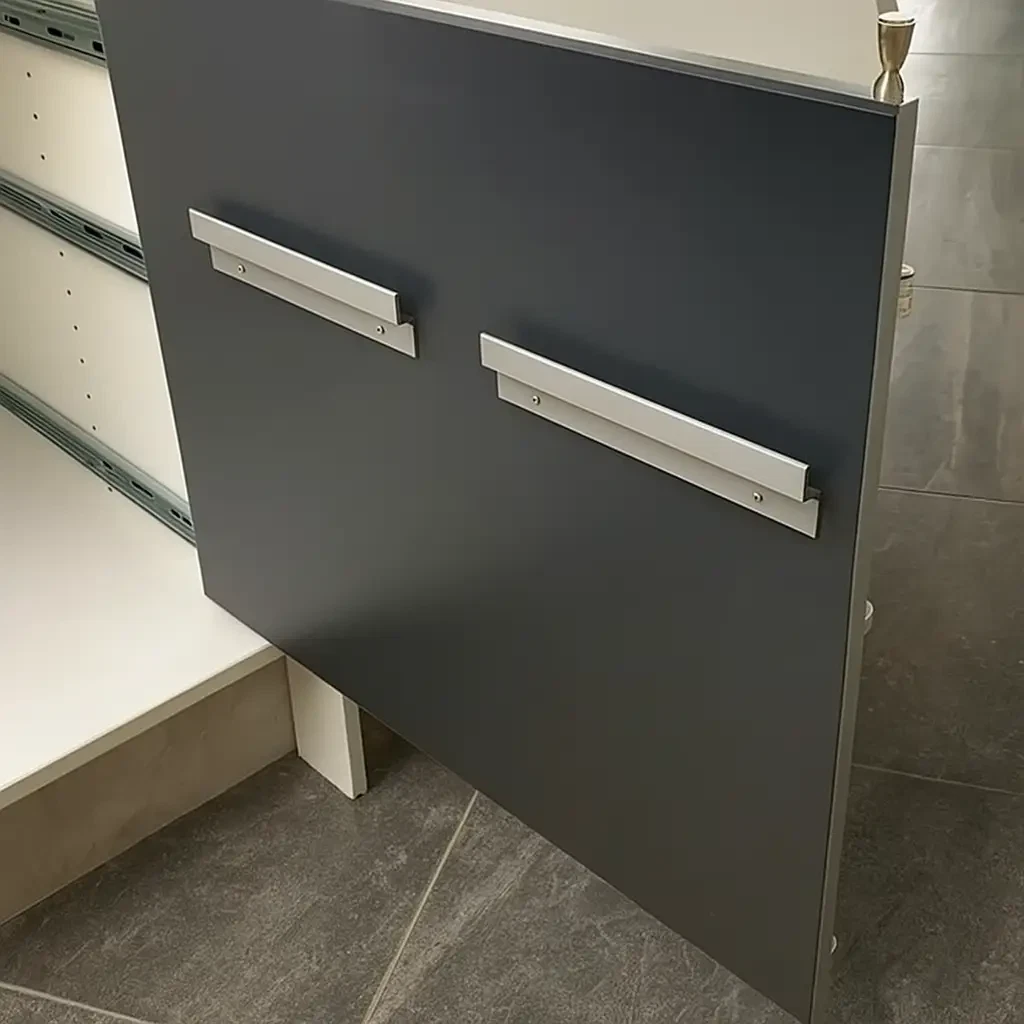 udtræksplade grå, herefter det antal affaldsspande, du ønsker, og om spandene skal monteres på den brede eller smalle side.