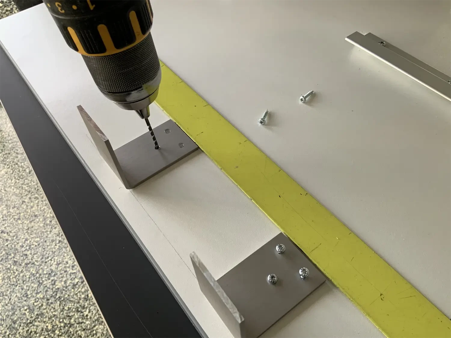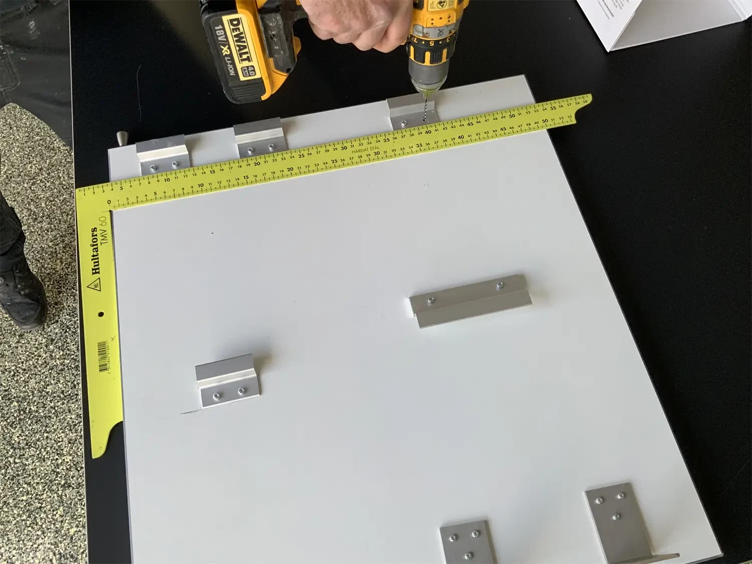 Vi vejleder dig ovenfor, via billedserien, om hvordan du placerer ophængsbeslagene nemmest ved brug af en vinkel.