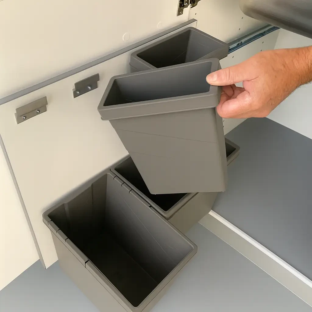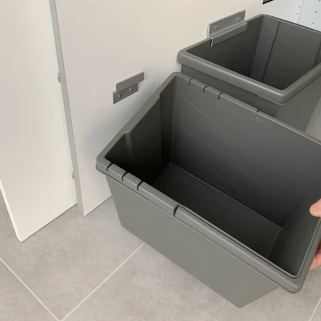 Uanset om du skal bruge 2, 3 eller flere spande, er det praktisk, at spandene nemt kan tages af og på – så rengøring og affaldssortering bliver enkel i hverdagen.