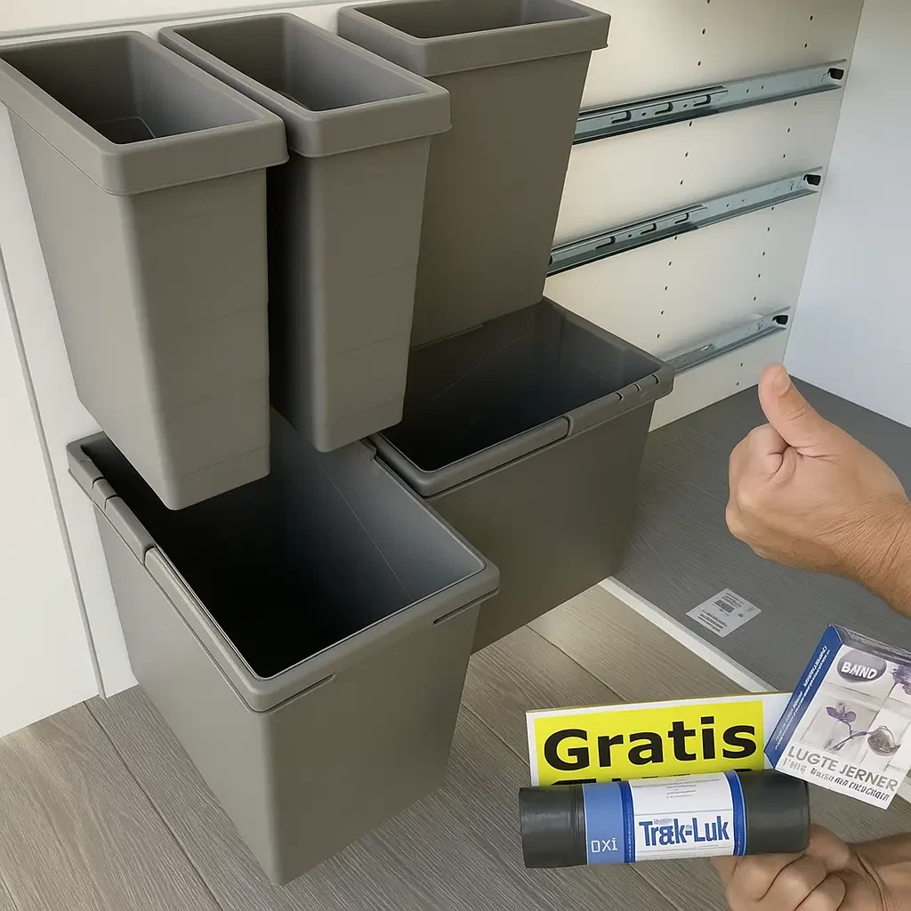 Du kan bygge et affaldssorteringssystem, der passer præcist til din skabsbredde, dit behov for sortering og din indretning.