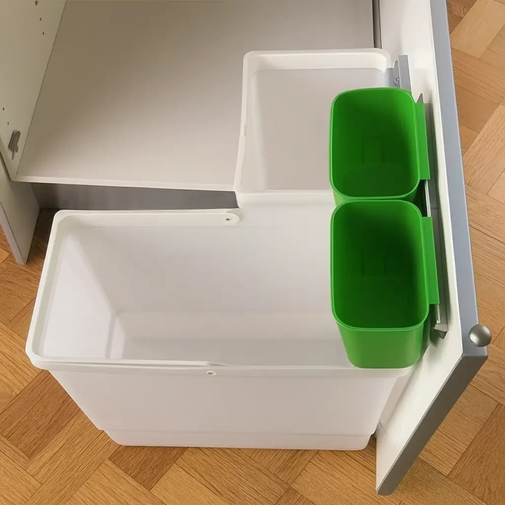 Du kan bygge et affaldssorteringssystem, der passer præcist til din skabsbredde, dit behov for sortering og din indretning.