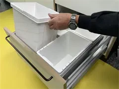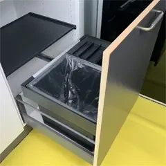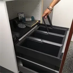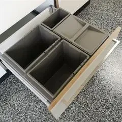 På den måde udnytter du alt pladsen og får op til flere muligheder for at sorterer affald i et og samme skab / skuffe.