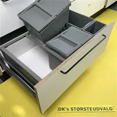 - Har du en skuffe på under 60 cm bred, har du mulighed for at stille løse affaldsspande ned i skuffen. Se vores affaldsspande her