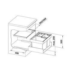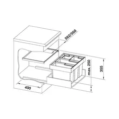 - Er skuffen bredere end dit affaldssystem, kan du sætte løse affaldsspande ned ved siden af systemet