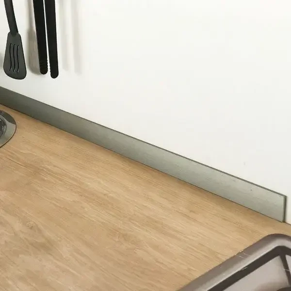 Brug denne flade aluliste til at dække en evt. afstand mellem bordpladen og fliser på væggen. Listen limes på med en fugepistol. Placér ikke listen højere oppe end der er plads til en acrylfuge mellem alulisten og flisen.
