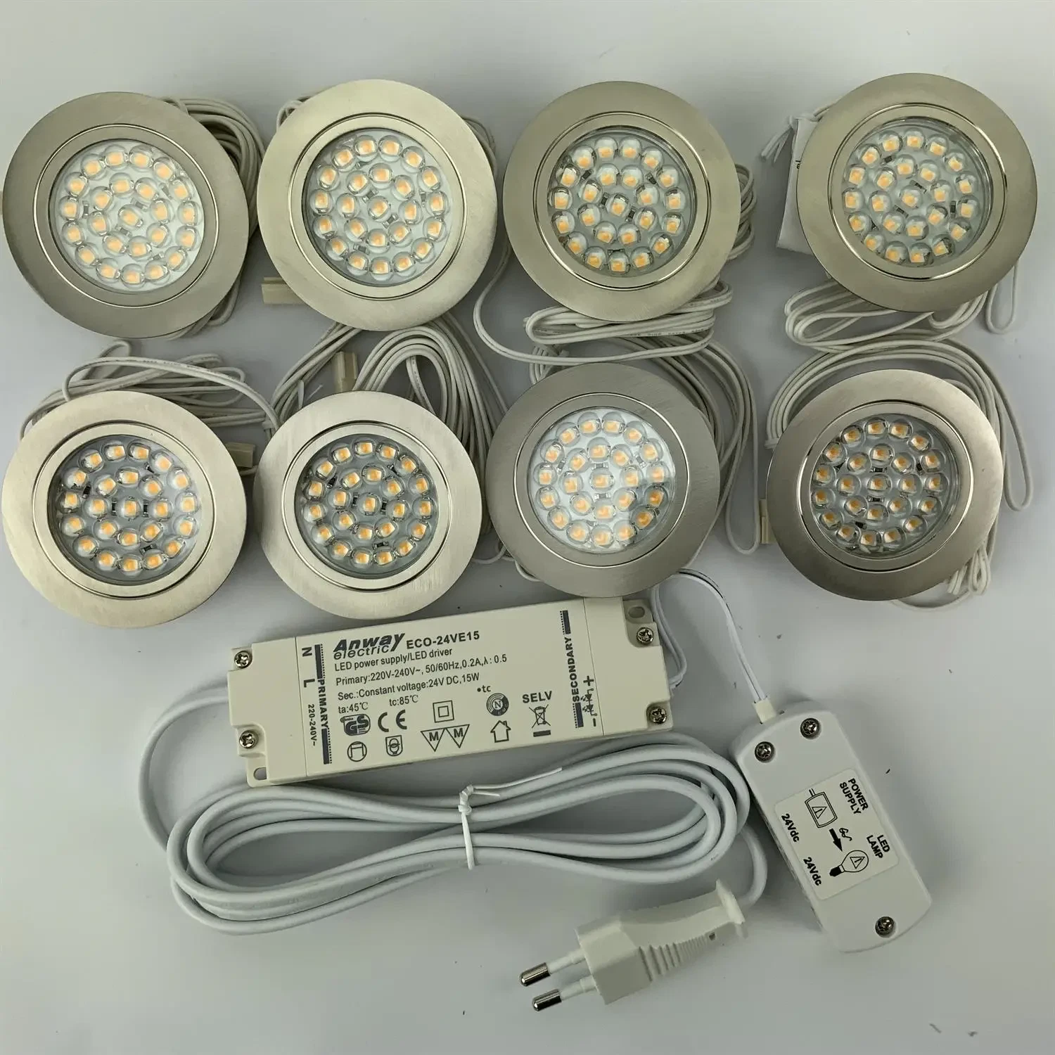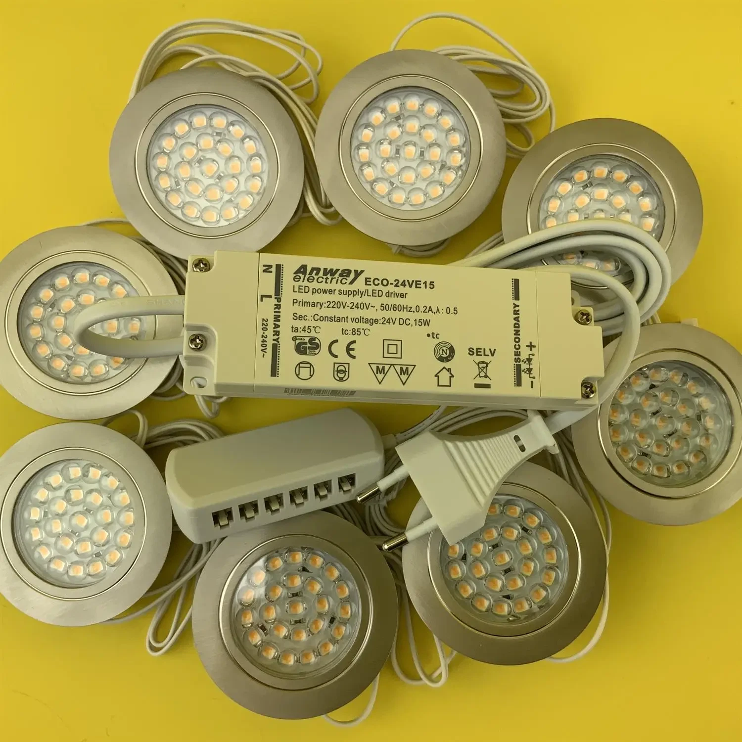 De bedste LED indbygningsspot her i sæt af 8 stk. spots og 1 stk. LED driver. Spots som findes her i flot børstet stål til skarp pris. Disse køkkenspots med LED giver et klart og behageligt lys og er derfor velegnet til underskabsbelysning.
