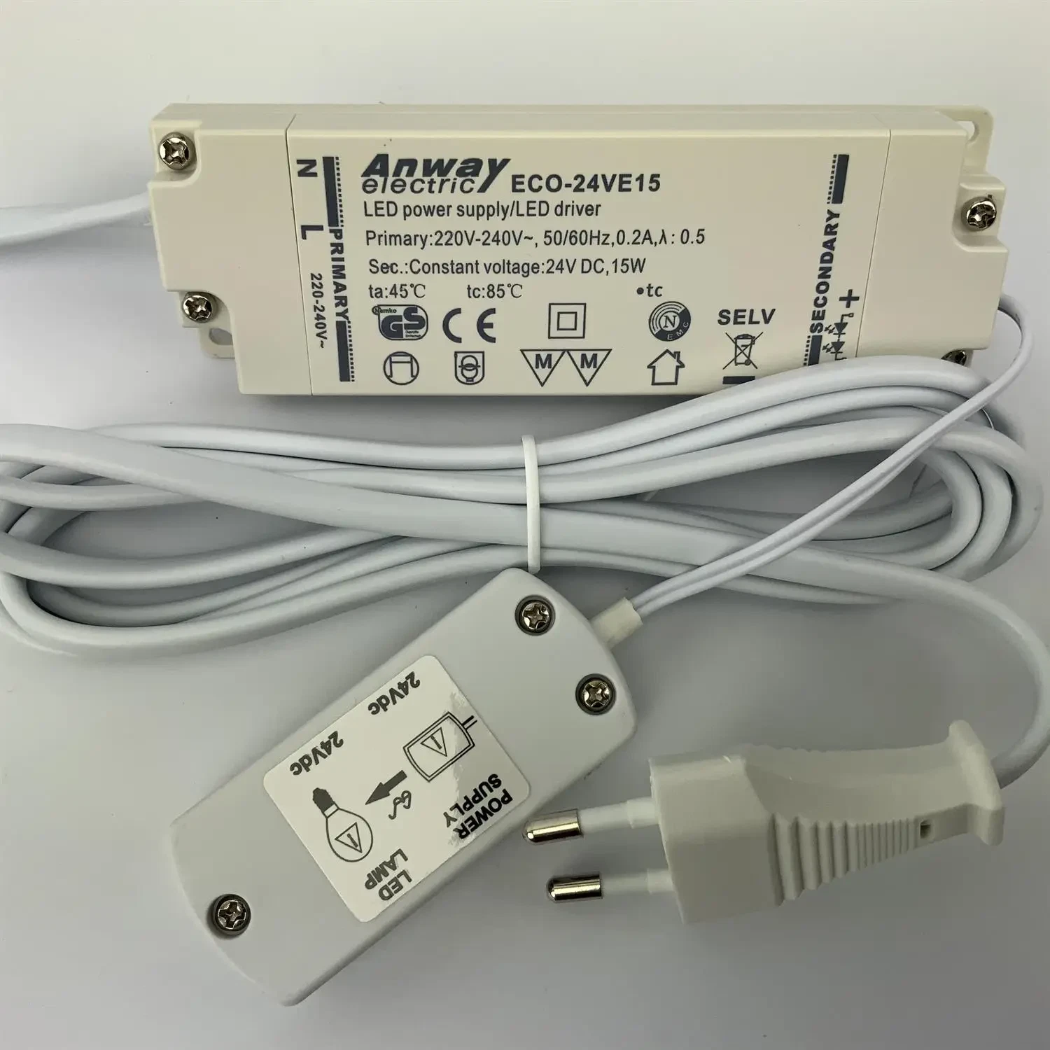 1 stk. LED driver med 2 mtr. ledning med stikprop og dåse for tilslutning af max. 8 stk. LED spots
