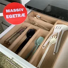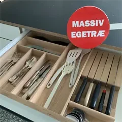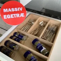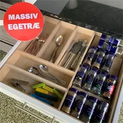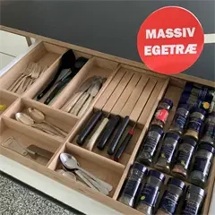 Her finder du vores kollektion af bestikindsatse i træ. Du kan til indsatserne på 60 og 80 cm tilkøbe knivholder og/eller krydderiindsats i træ, til at ligge i skuffeindsatserne. Det giver dig friheden til at sammensætte bestikindsatsen som du vil have den. Syntes du krydderierne skal have plads i skuffen, kan du organisere disse med krydderiindsatsen. Skal køkkenknivene i stedet prioriteres, kan knivholderen give dig et fint overblik. Samt vil knivene lægge så du lettere kan tage fat i håndtaget til knivene. Bestikindsatserne er lavet af bambus så du får et produkt i massiv træ, hvor kvaliteten dermed er god. Ved almen slitage, får man herved en bestikskuffe i træ som kan holde i mange år.