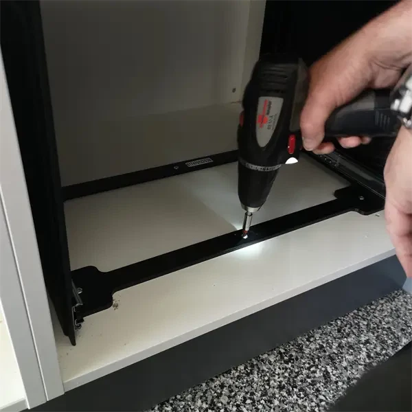 13. Nu kan systemet fastskrues til bunden af skabet: