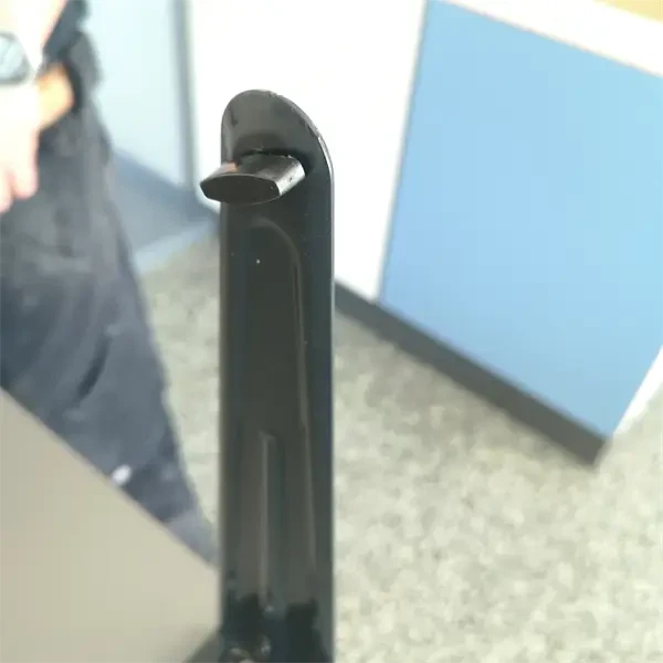6. Øverst på beslaget er en plastik knop. Den skal løsnes, så den kan dreje lidt: