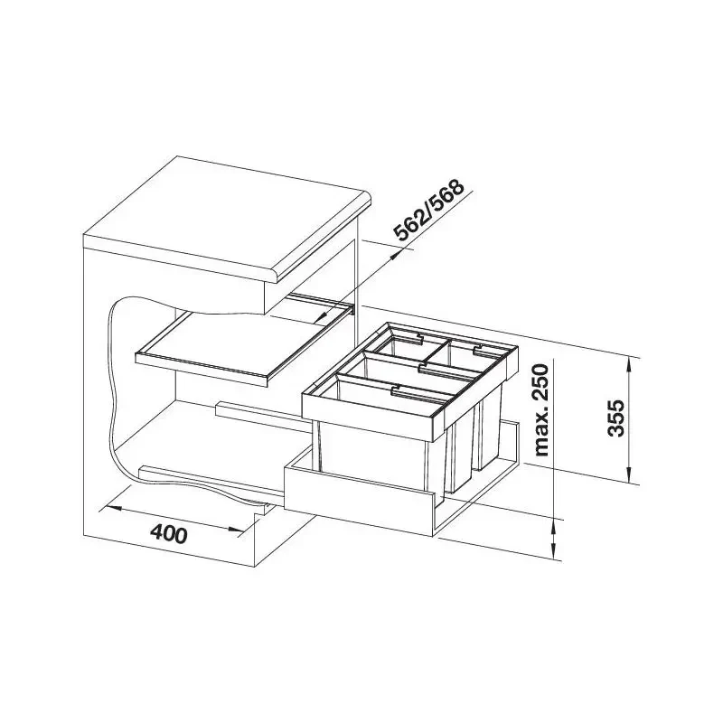 BLANCO FLEXON II 60/3 (3x15L) affaldssystem til skuffe