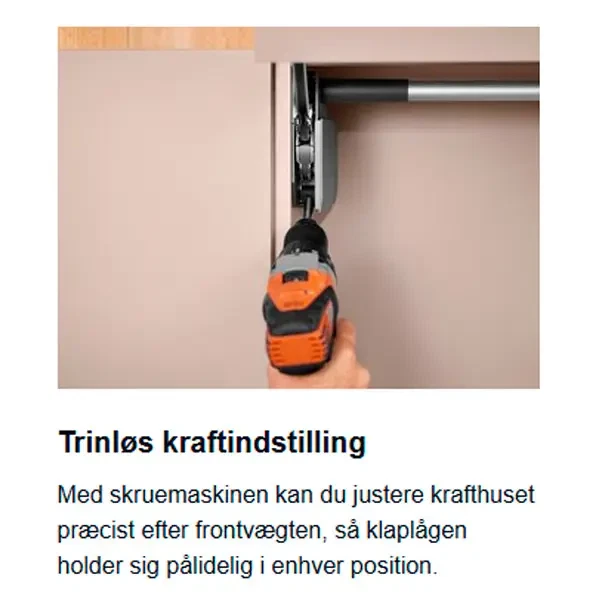 Krafthusets styrke indstilles ved montering.