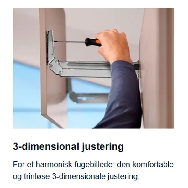 • Finjustér lågen 2 mm i alle retninger på beslaget. Perfekt indstillet set udefra.