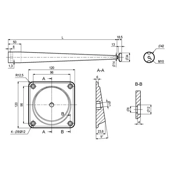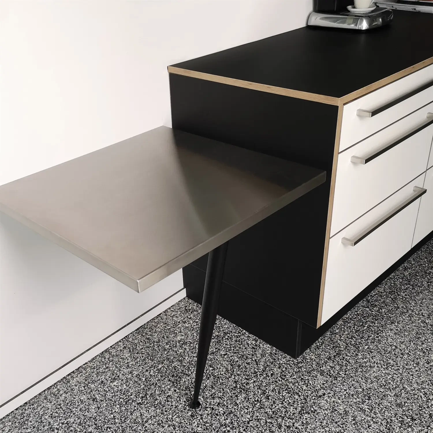Bordben i stål pulverlakeret mat sort med skrå eller lige flange i rigtig flot finish.