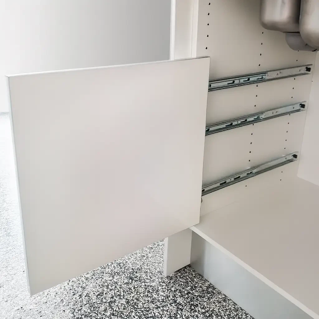 - Har fuldt udtræk og kuglelejer, så affaldsspandene nemt bringes helt ud til dig