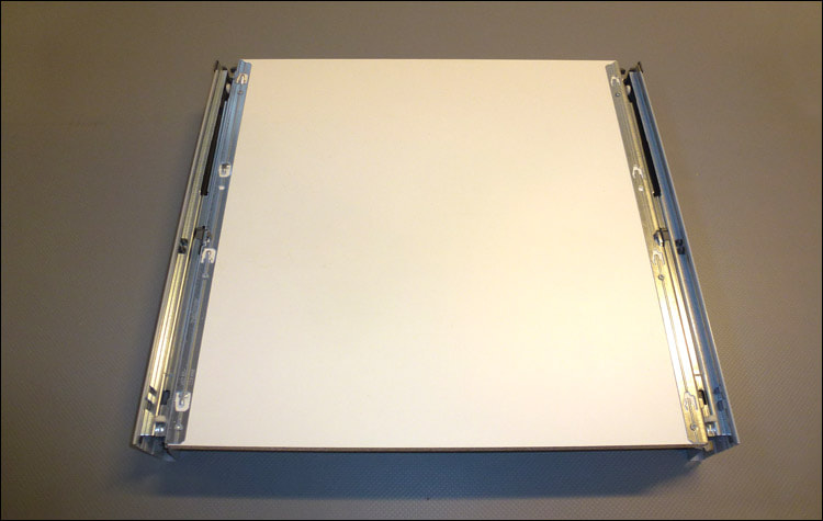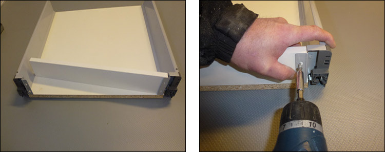 Således ser undersiden af skuffen ud efter monteringen af skuffesiderne.