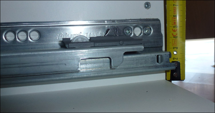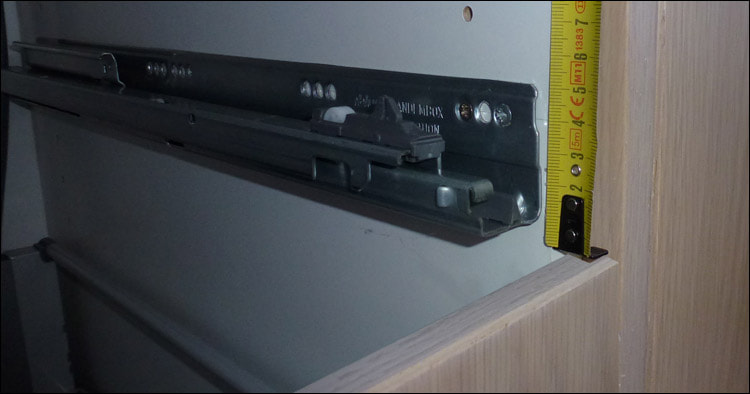 Når man har sikret sig, at den nederste skuffe er monteret korrekt tages der mål til monteringen af det næste skinnesæt.