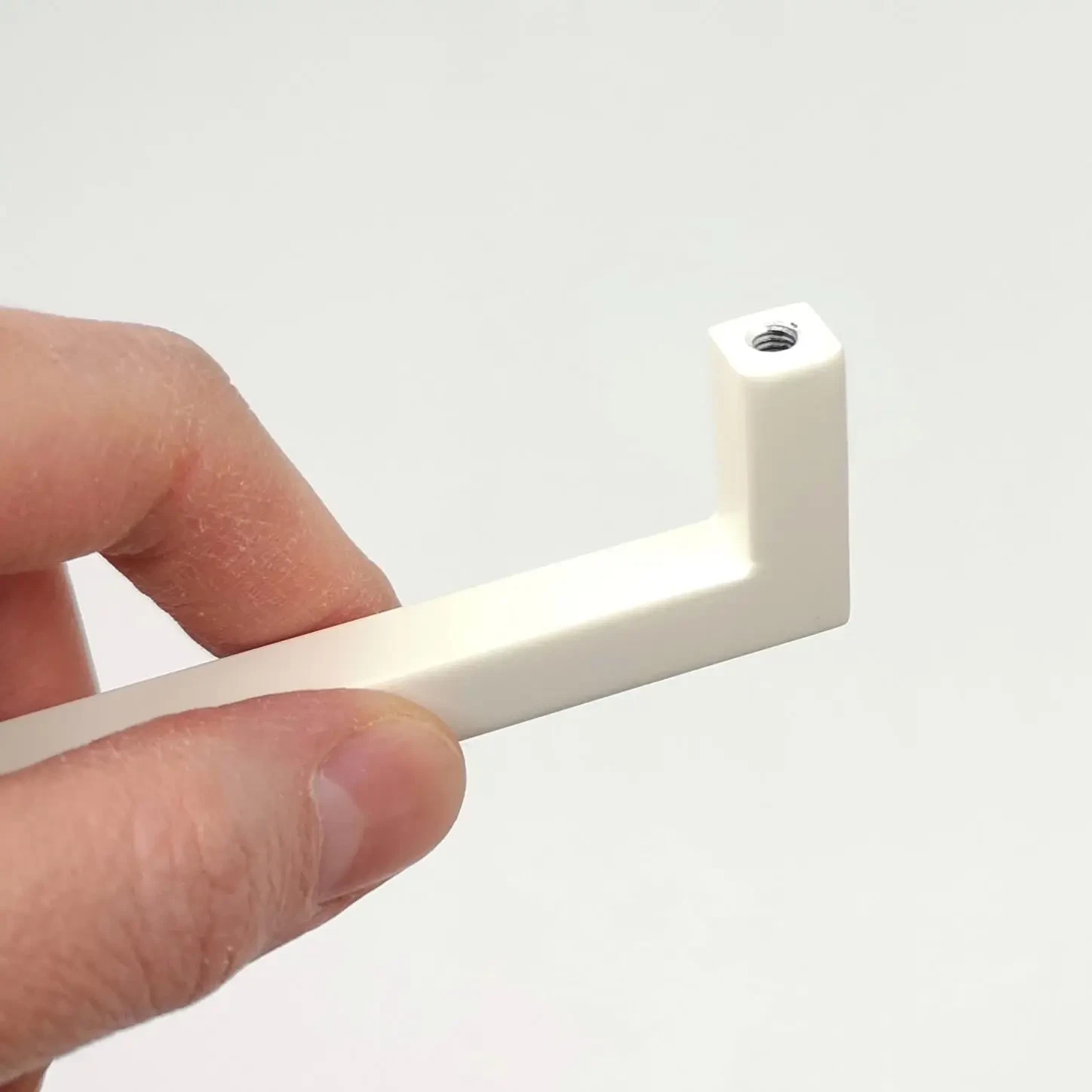Neutralt og slankt bøjlegreb i en knækket hvid, som passer til mange skabe og låger.