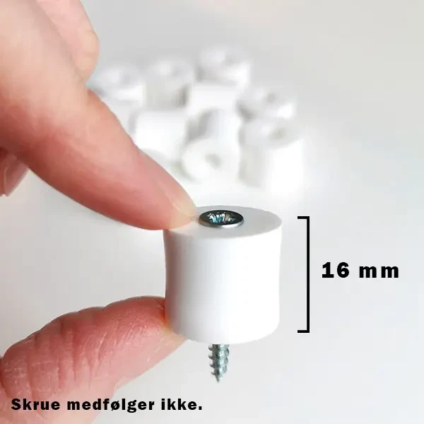 Løse distanceskiver der skaber 16 mm "luft" mellem skabssiden og dit udtræk.