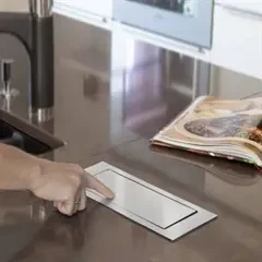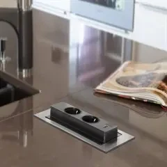Her på siden finder du smarte el-artikler til dit køkken. Mere præcis pop up stikkontakter. Hvis du er på udkig efter strømløsninger til køkkenet og ikke er særligt begejstret over tanken om flere stikkontakter, så har vi den rette løsning til dig. Med Evoline backflip får du et produkt som er både smart og praktisk. Den kan installeres i væggen eller i bordpladen, hvor den vil fungere som en pop up stikkontakt i bordpladen. Ved en simpel berøring vil Evoline Backflip vende sig 180 grader om og byde på 2 stikkontakter og en usb-oplader, så du kan lade din telefon, riste brød og varme rester i mikroovnen på samme tid.