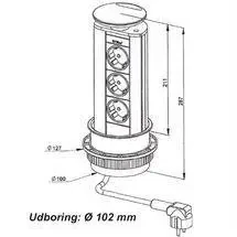 Og med en samlet installationsdybde på kun 53 millimeter, er det ganske ligetil at montere ovenpå en skuffe eller andre enheder. Anvendes den som stikkontakt i bordpladen, må bordpladen dog maksimalt være 40 mm tyk.