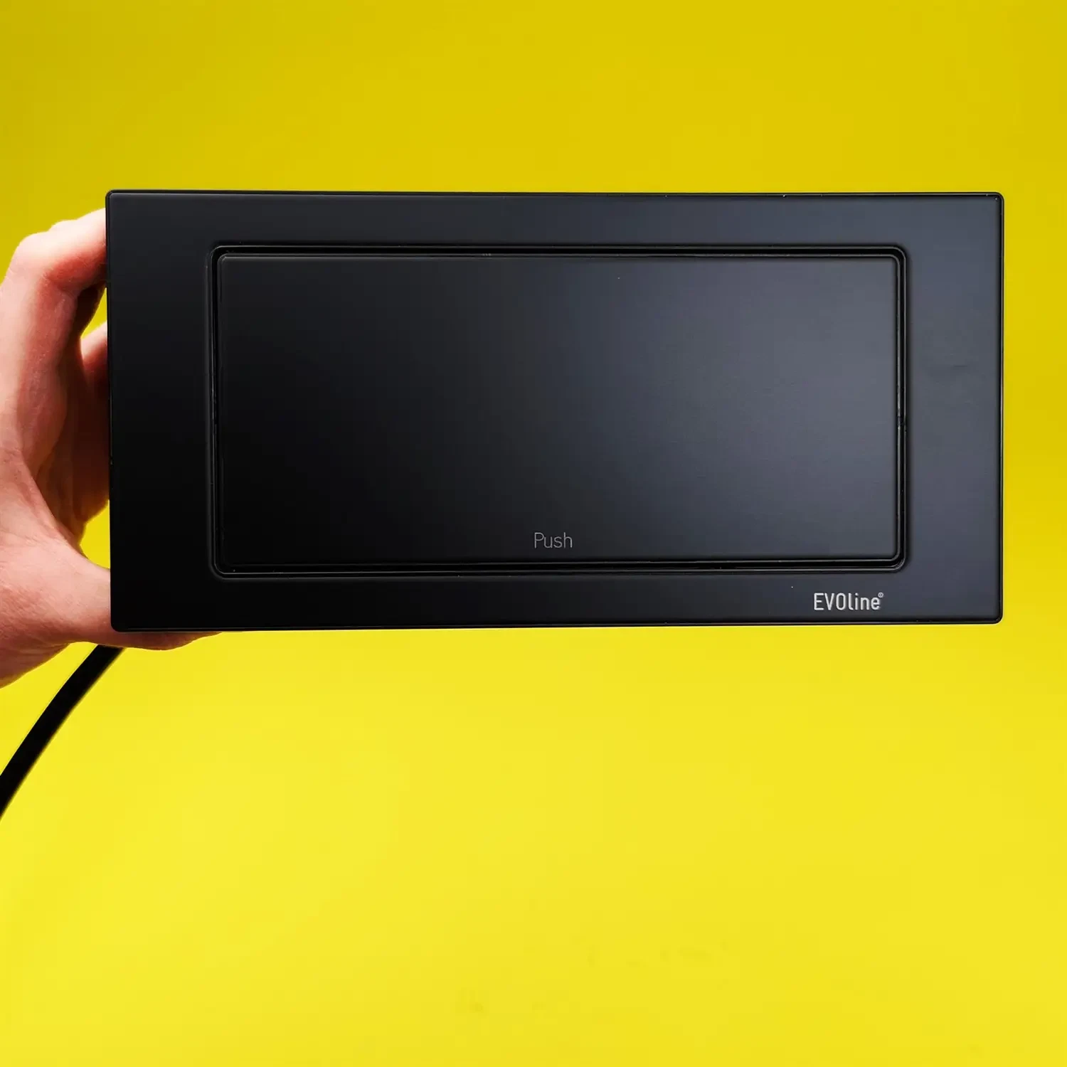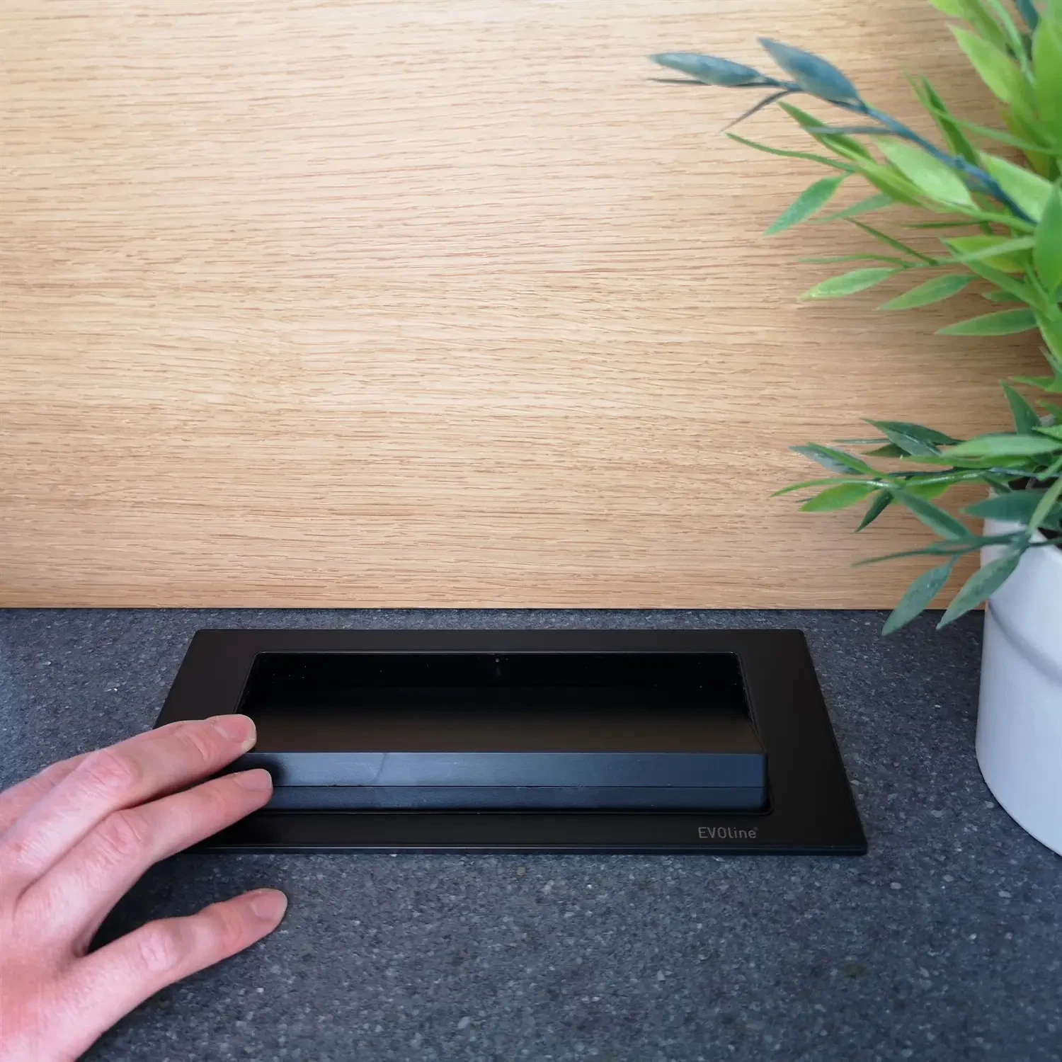 EvoLine BackFlip - mat sort - roterende strømskinne-stikkontakt til bordplade