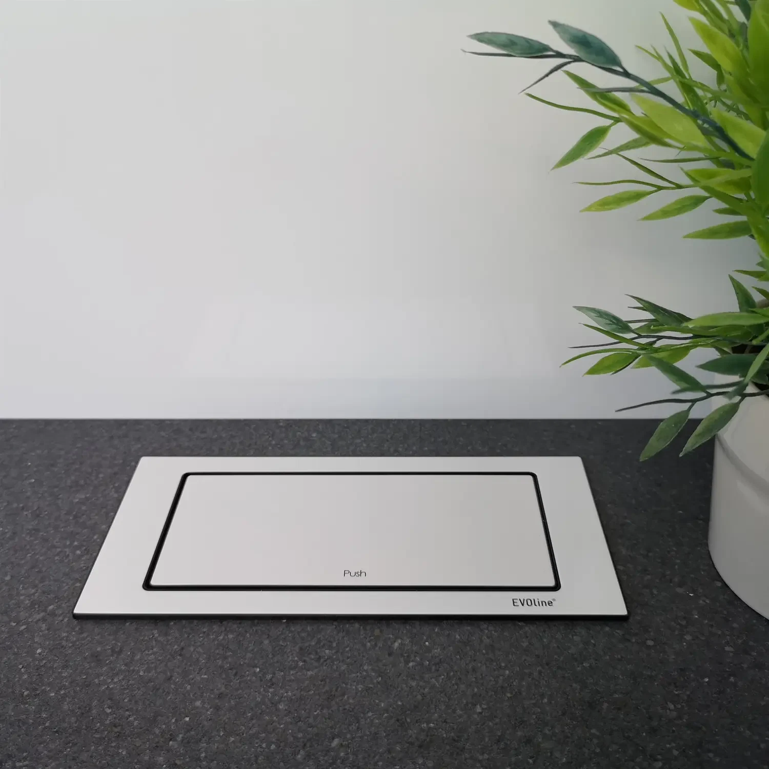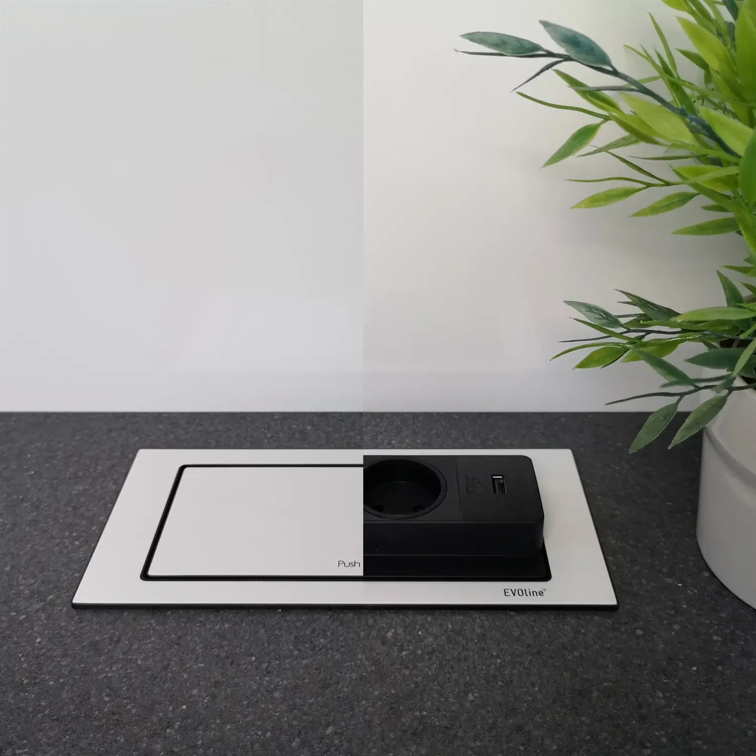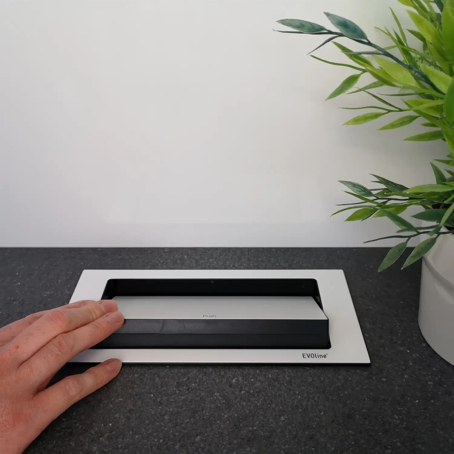 EvoLine BackFlip - mat hvid -roterende strømskinne- stikkontakt til bordplade