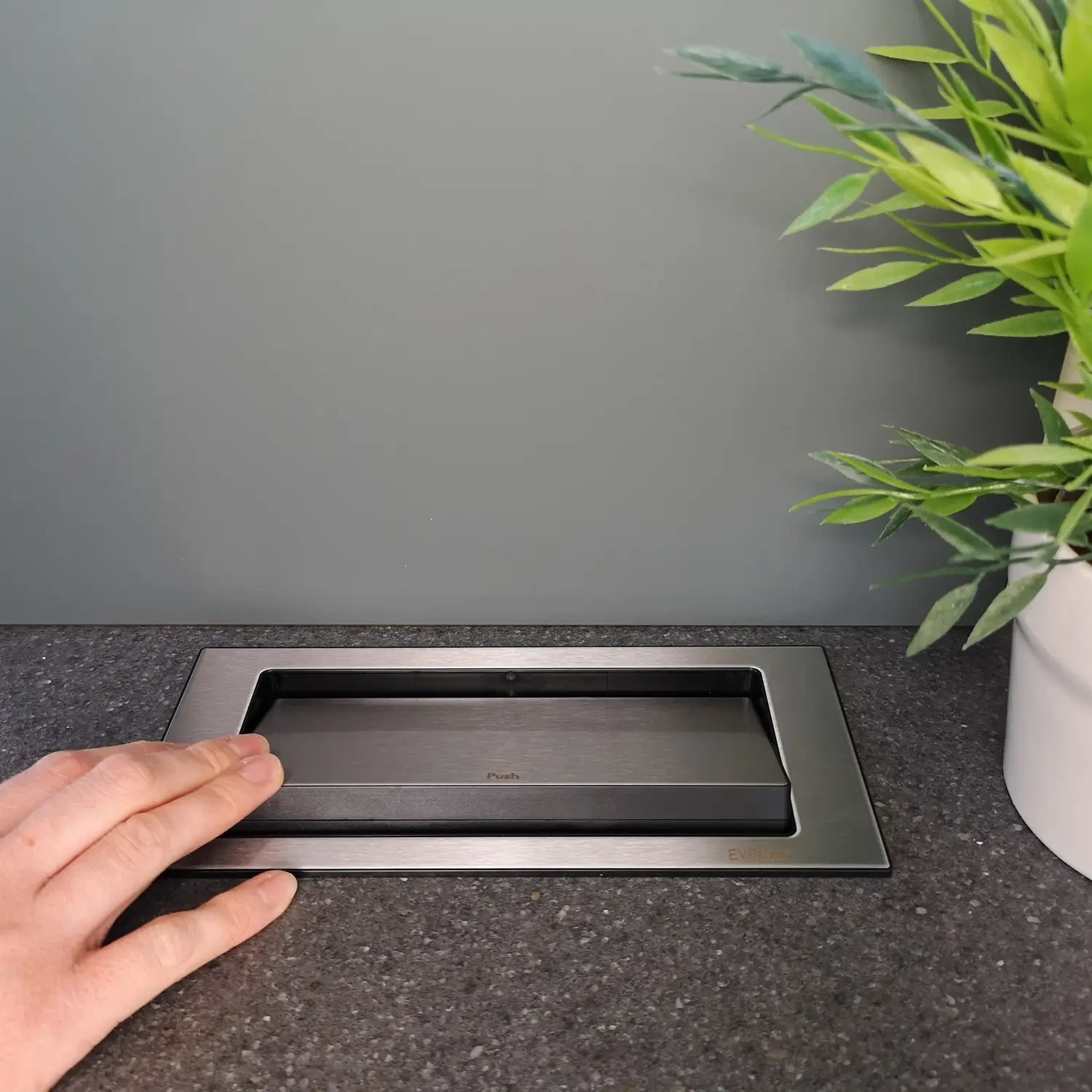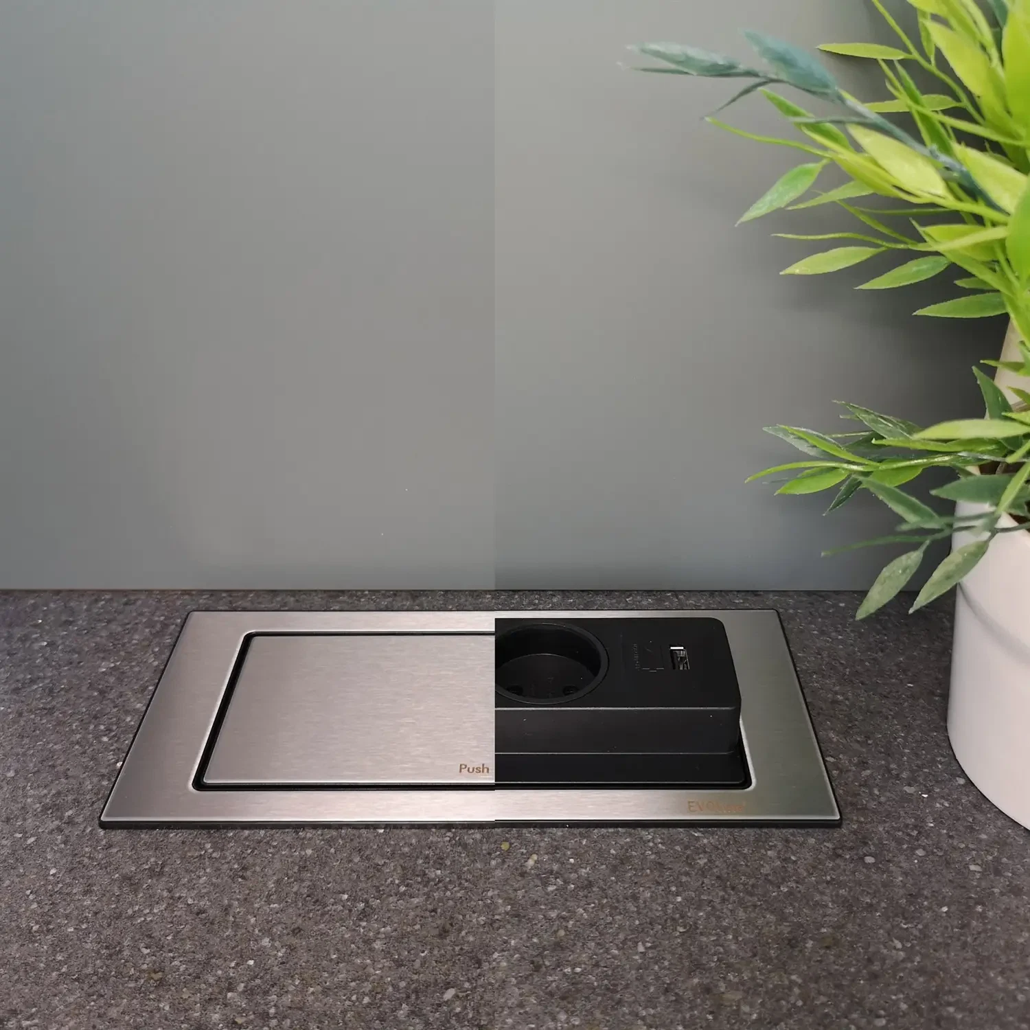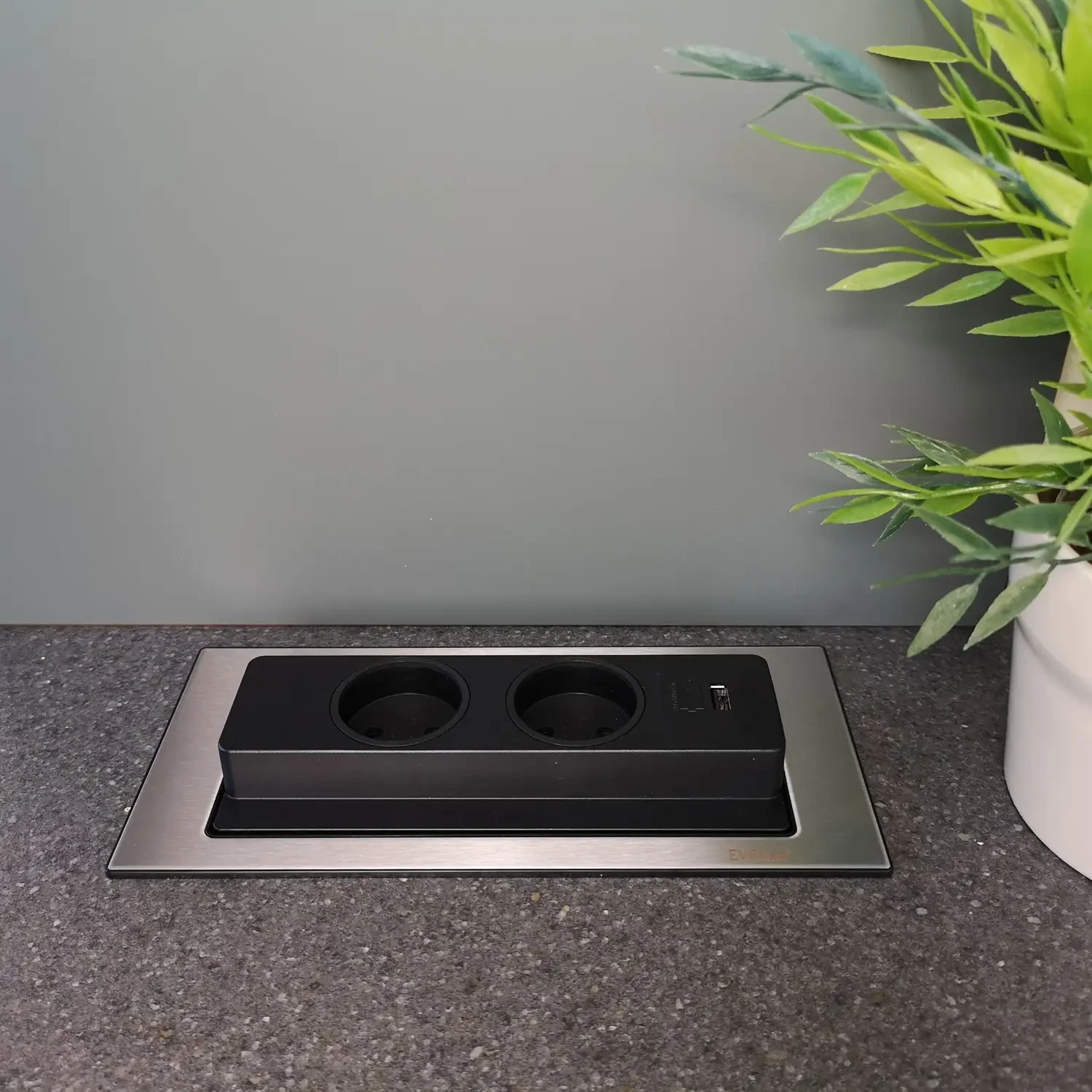 EvoLine BackFlip - rustfri stål - roterende strømskinne - stikkontakt til bordplade