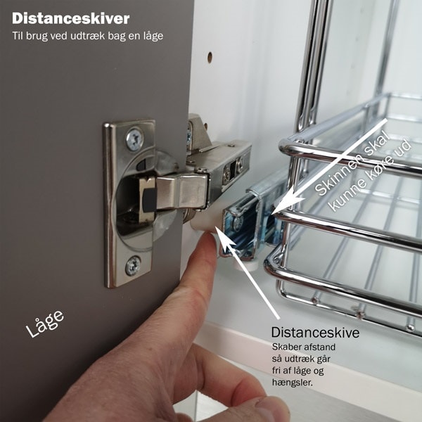 Distanceskiver bruges kun, hvis du monterer udtræk bag en låge (16mm). Læs mere her >