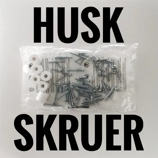 Skruer der passer til alle vores skabsudtræk, som f.eks. skuffer, rengøringsudtræk, udtrækshylden, "Individuel" pladen til affaldsspande mm.