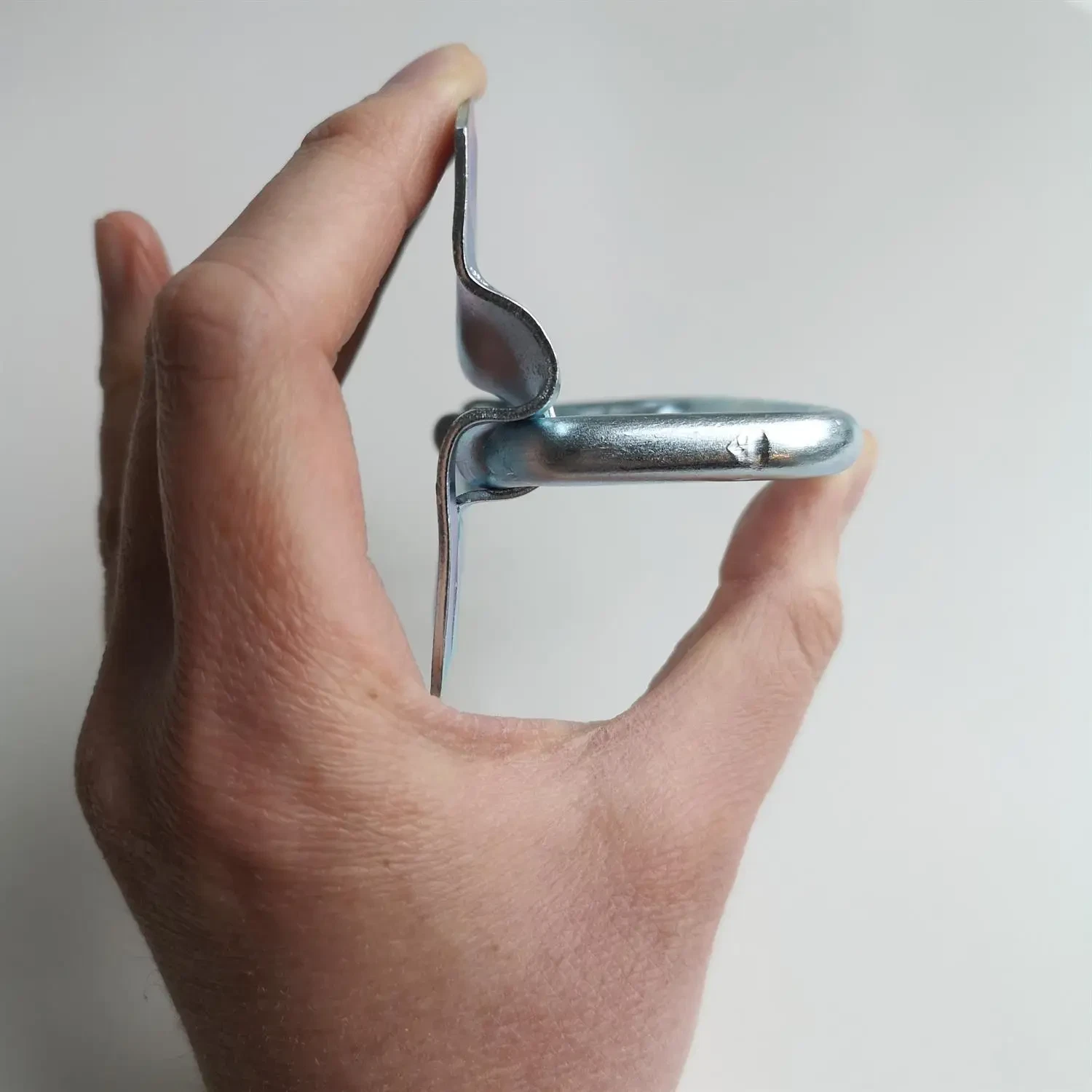 Hanken går kun halvvejs op, så den står vandret, når man løfter.