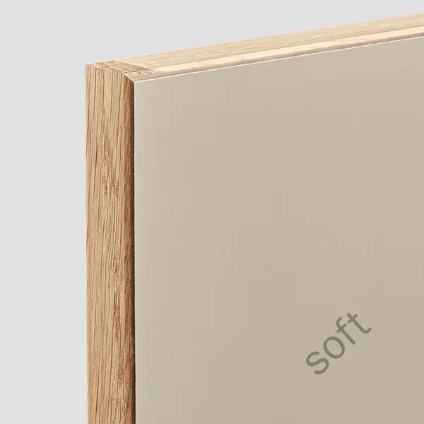 Fredericia køkkenlåger og fronter efter dine mål - soft beige højtrykslaminat med kant af træ [Pris H]