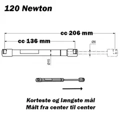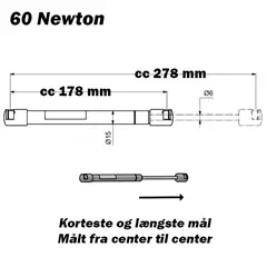 • Kraft (angives i Newton/Nm) – er den kraft gasdæmperen har, altså til hvor tung feks  låget/lågen er.