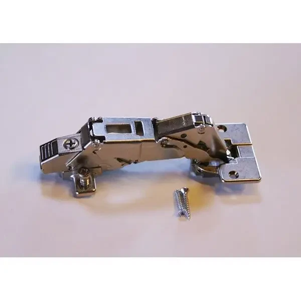 Kraftigt og robust hængsel til 90 grader "knæklåge" for vinkelret hjørne. Passer til 35 mm hul-udfræsning i låge og åbner 170 grader. Her ses oppefra, hvordan hængslerne sidder ift. skabet.