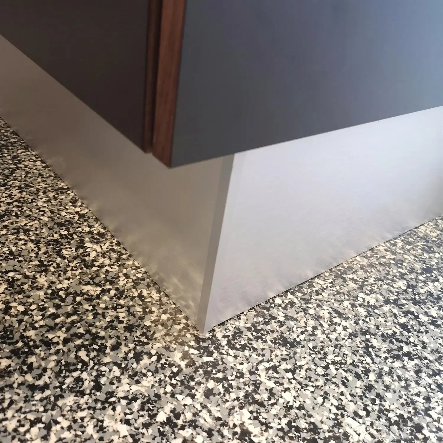 Hjørneliste i alu til hjørneafslutning af sokkel for såvel indvendige som udvendige hjørner. Bruges ved montage af sokkelfront / stållaminat. Denne størrelse anbefales når man ønsker at alulisten er mindst mulig synlig men stadig ønsker at beskytte sårbare kanter og hjørner.