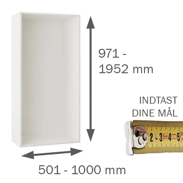 Højde på skab (ydermål) Indtast 971-1952 (mm):