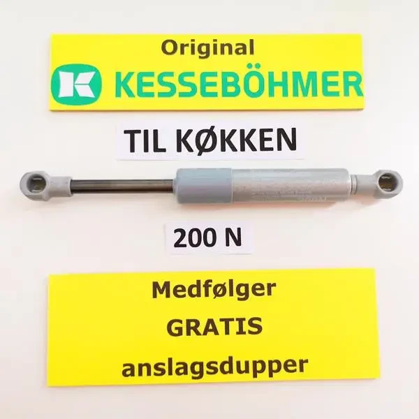 Denne originale Kesseböhmer lift-o-mat gasdæmper er på 200 Newton . Kan udtrækkes til 195mm mellem fastgørelsesknopper. Den totale længde er 210mm.