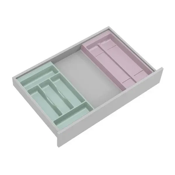 Passer i bestikindsats til køkkenredskaber 40 cm og i bestikindsats til 50 cm skuffe i mørk grå plast. (Se billederne.)