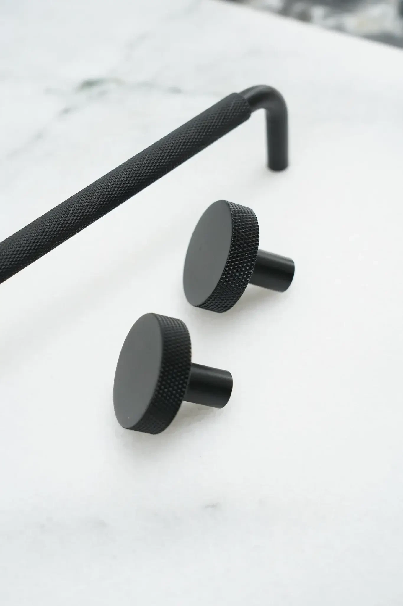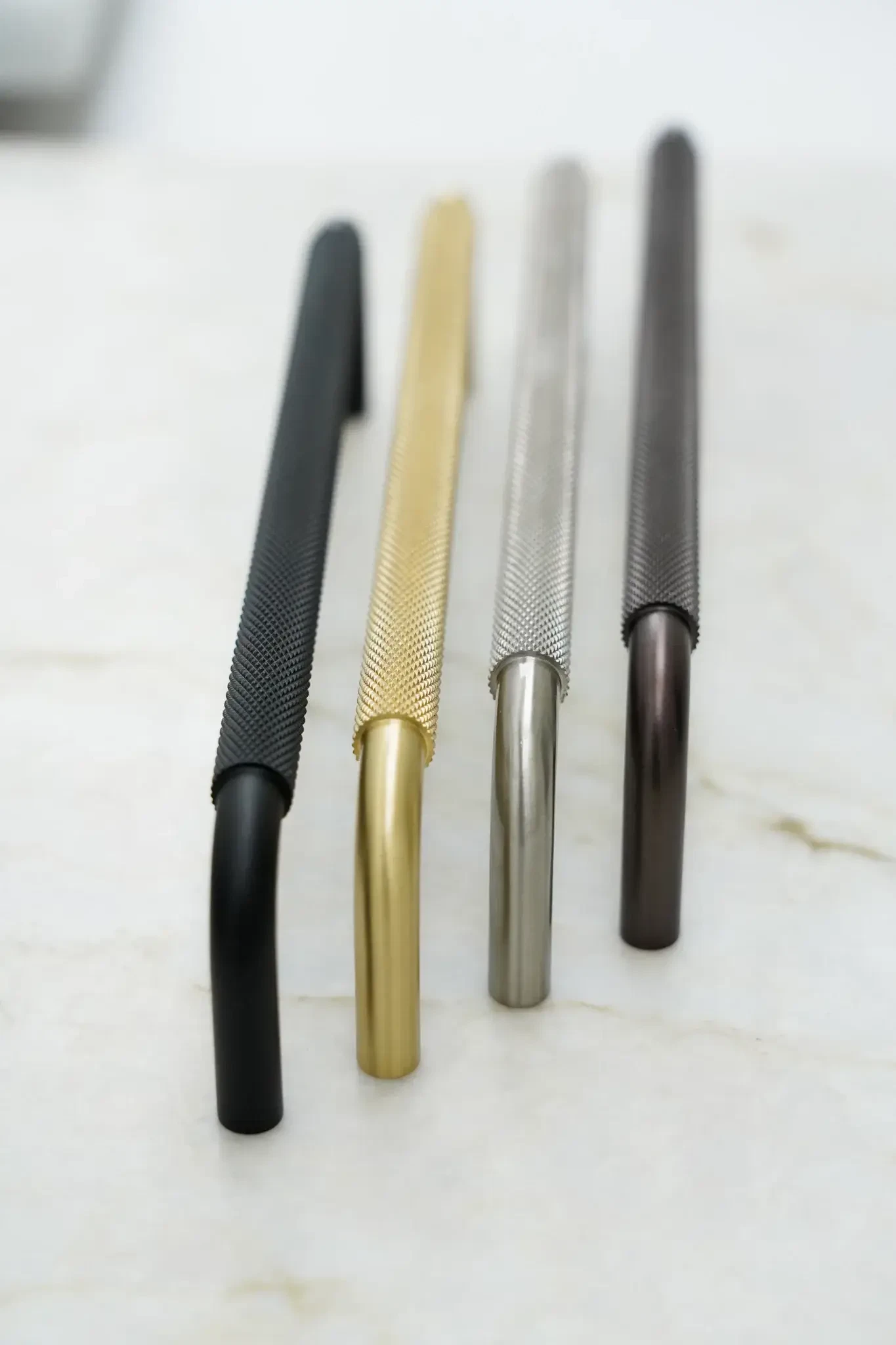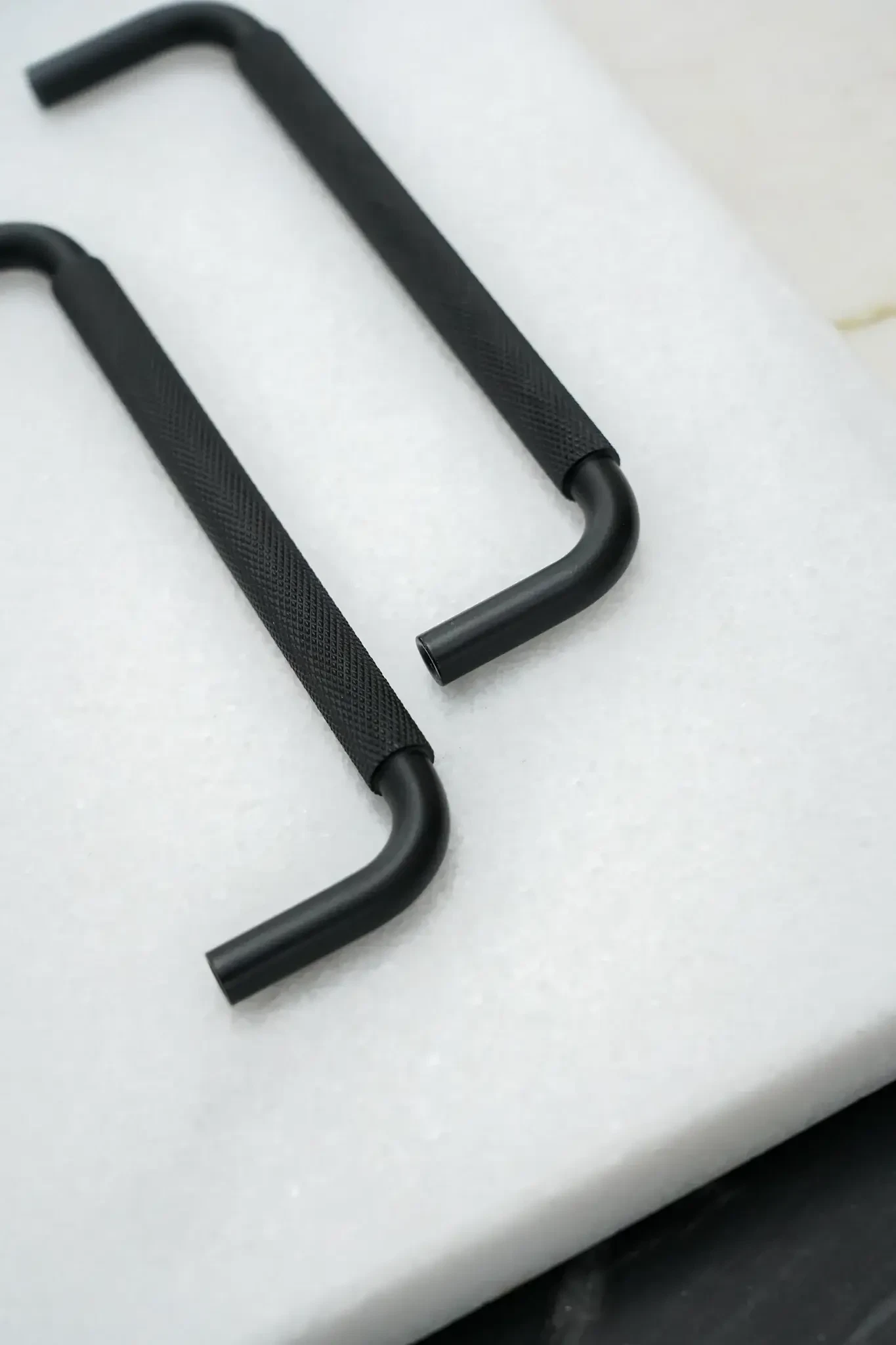 Køkkengreb er fremstillet i massiv messing, som har fået et mønster i diamond cut og lakeret med en overflade i sort og vil holde i mange år.