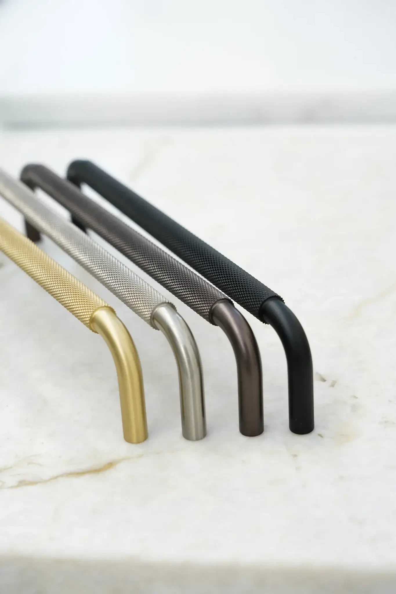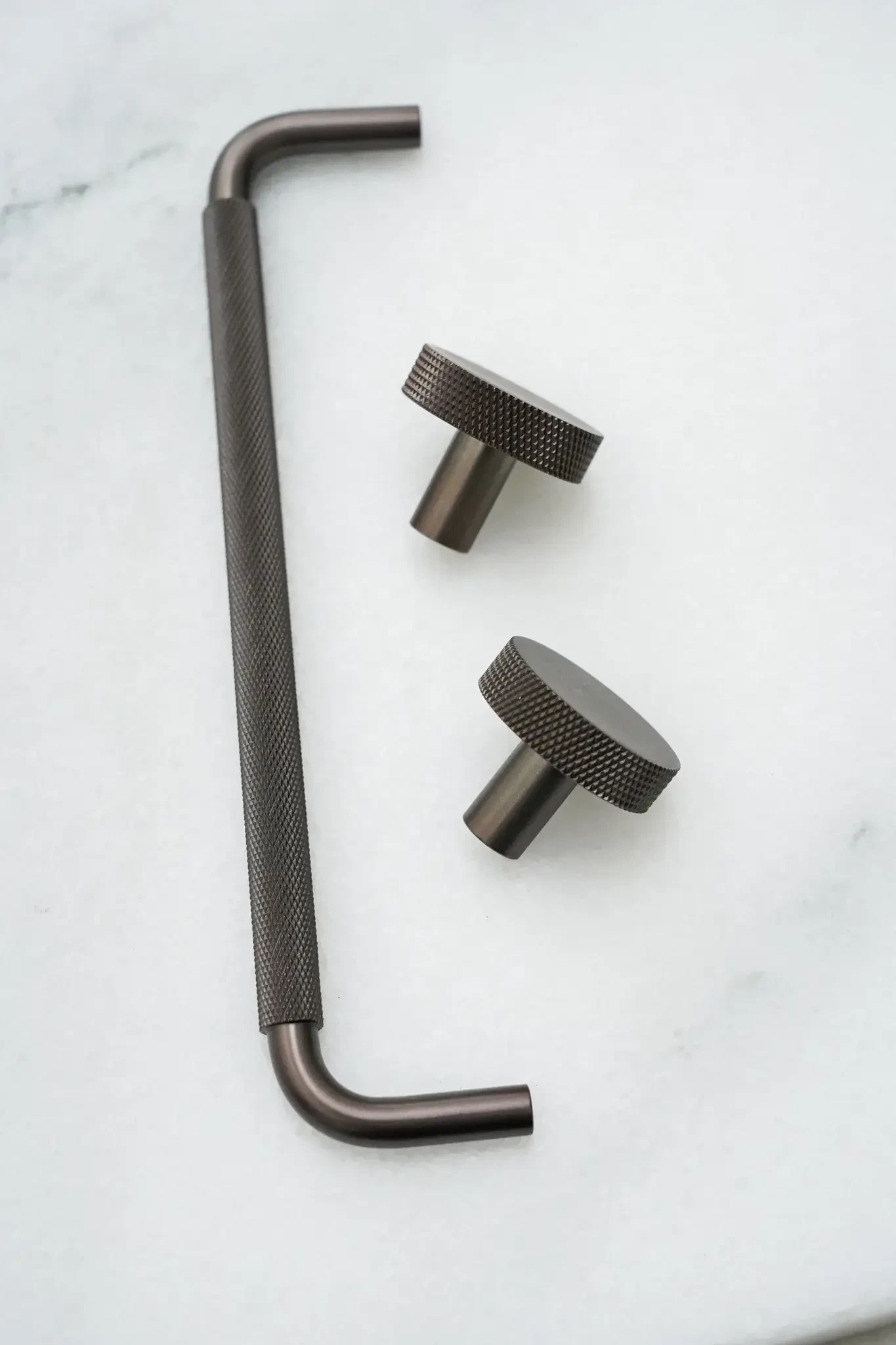 Køkkengreb er fremstillet i massiv messing, som har fået et mønster i diamond cut og lakeret med en overflade i sort og vil holde i mange år.