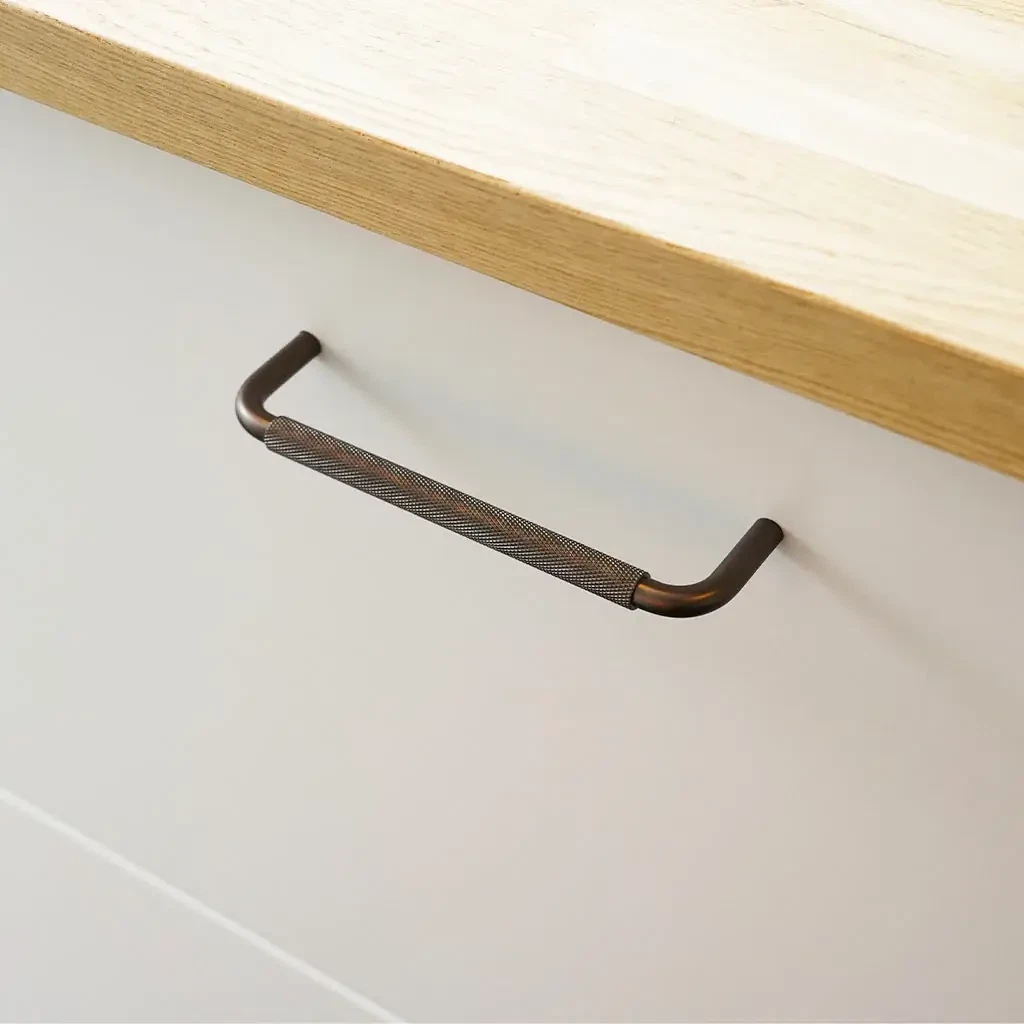 Køkkenlåge greb i bruneret messing med diamond cut overflade 96mm/128mm/160mm/224mm