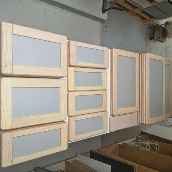 Disse køkkenlåger og skuffefronter er fra vores udstilling. Enkelte er med grebs boring.