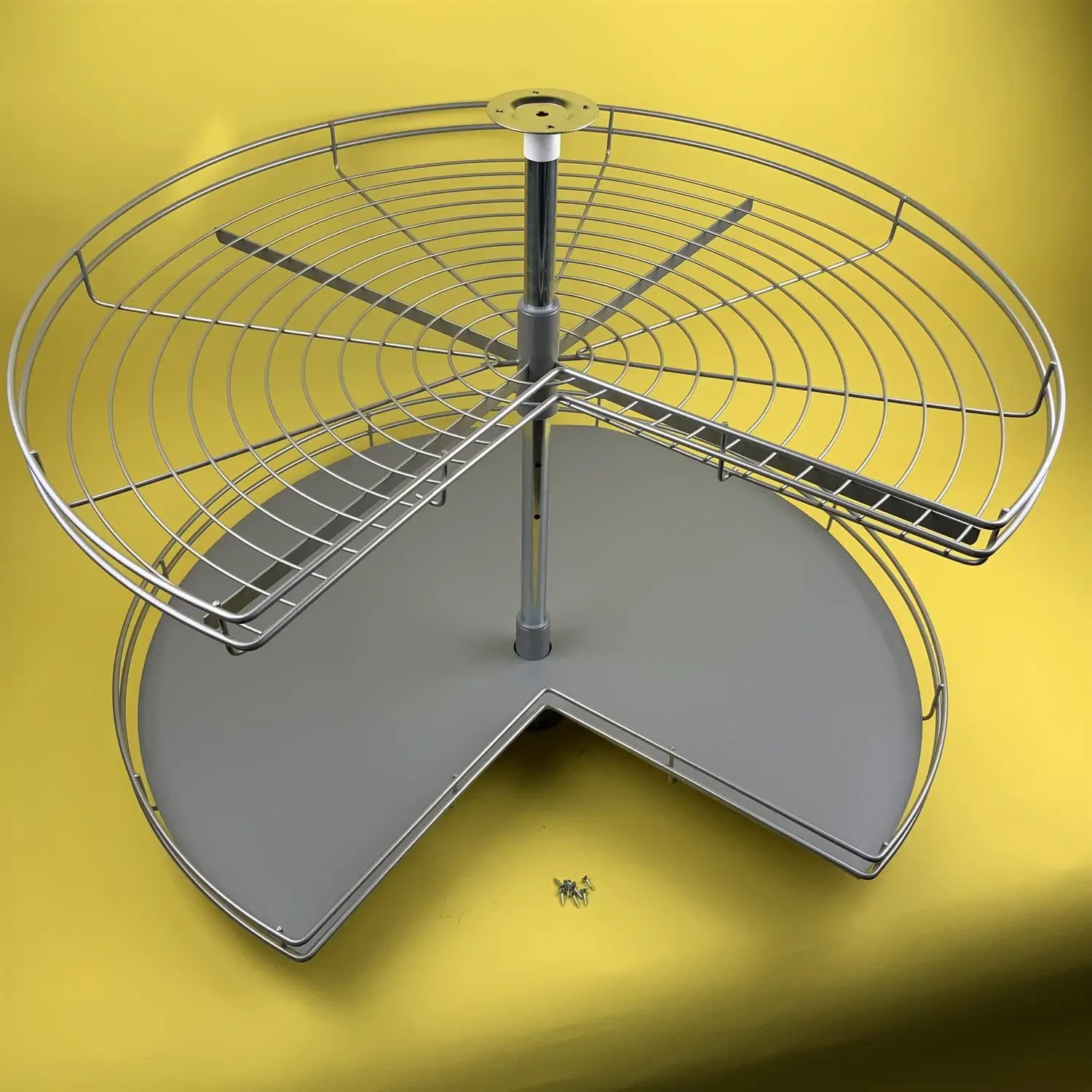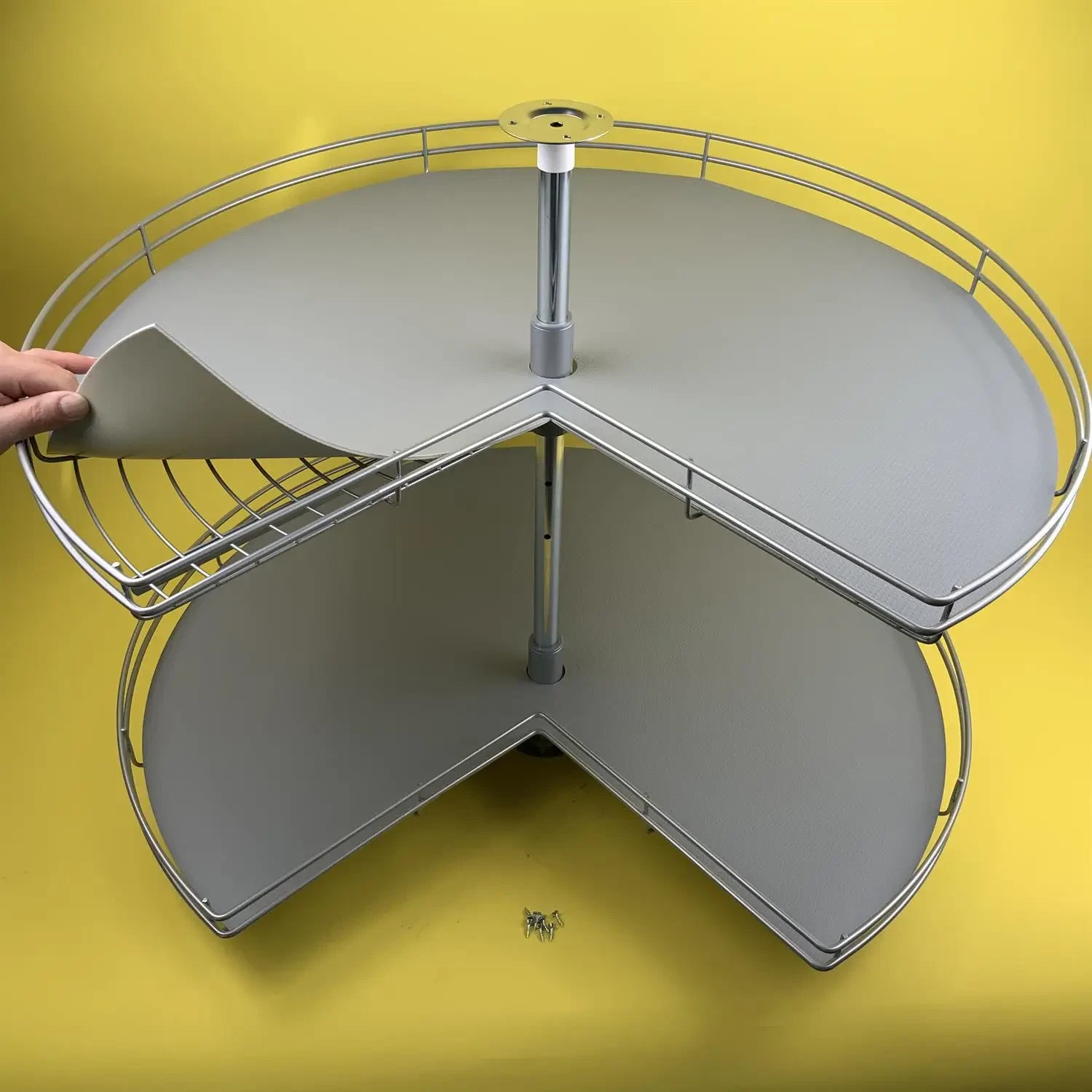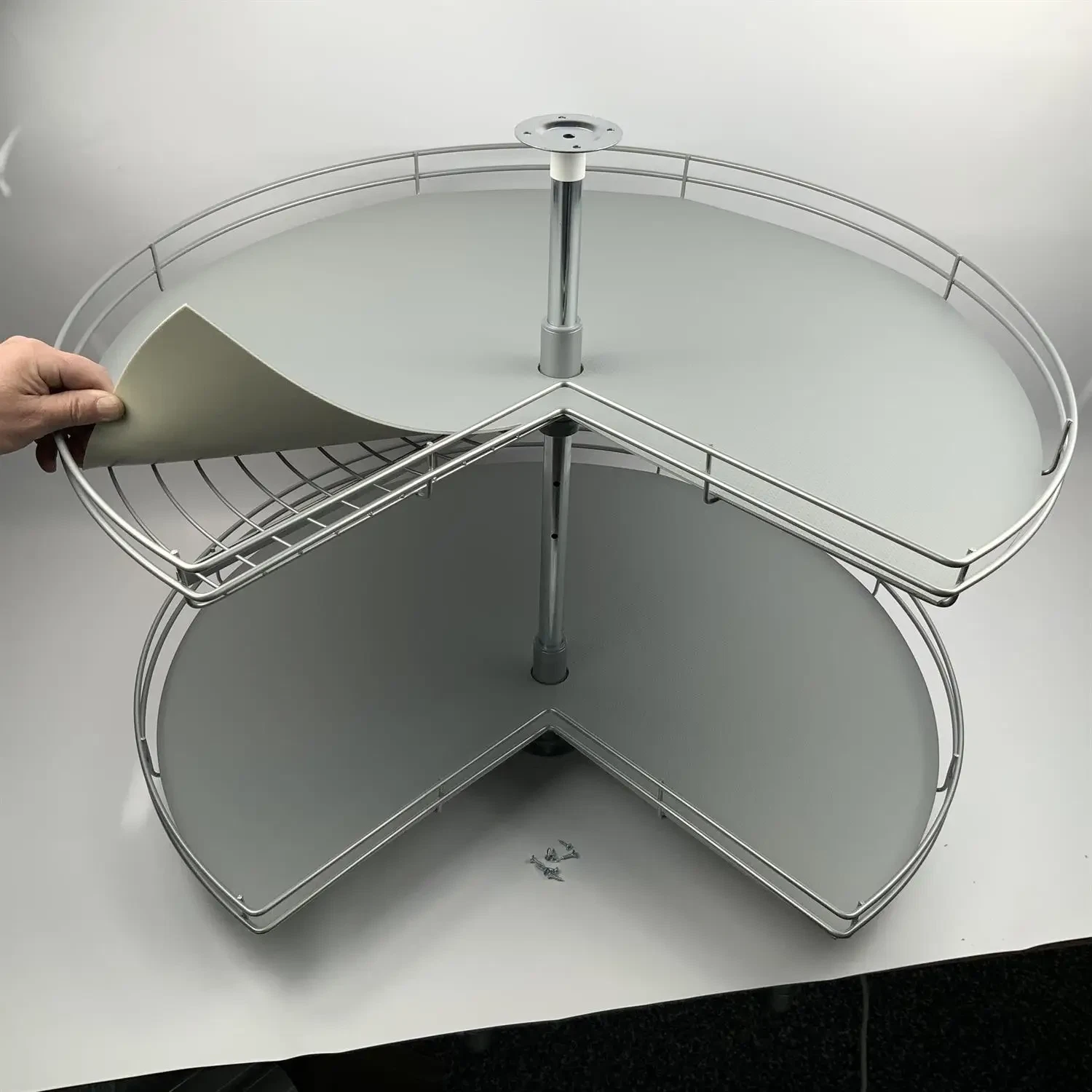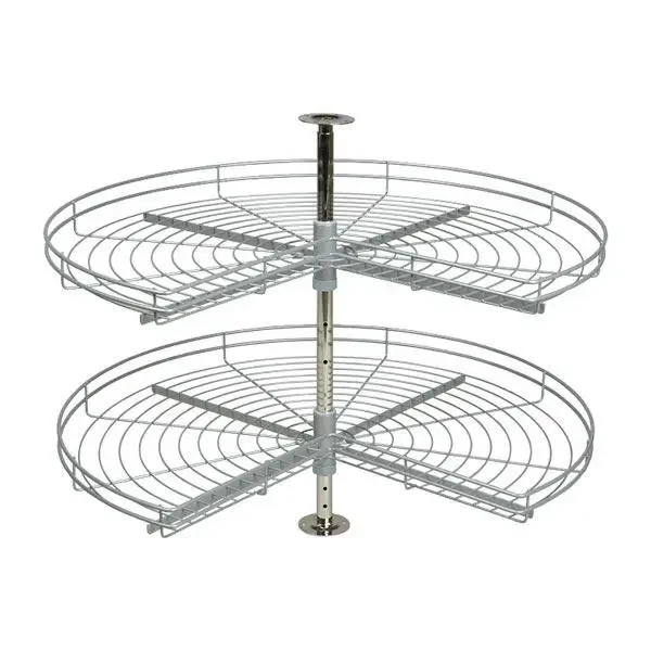 Med denne karrusel får du udnyttet hjørneskabet optimalt. 3/4 kvalitets karrusel til hjørneskab med 2 hylder i kraftig 6 mm omkrans-tråd.