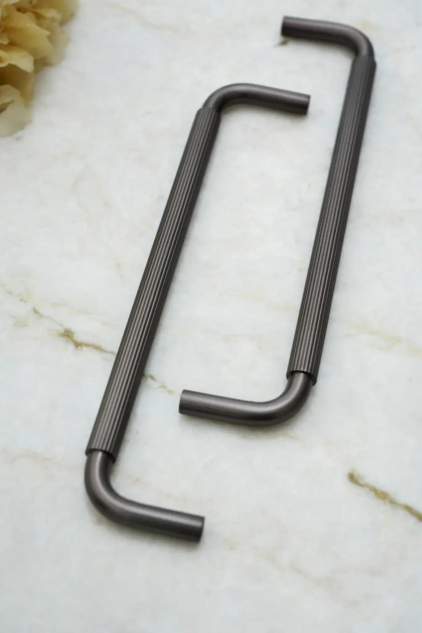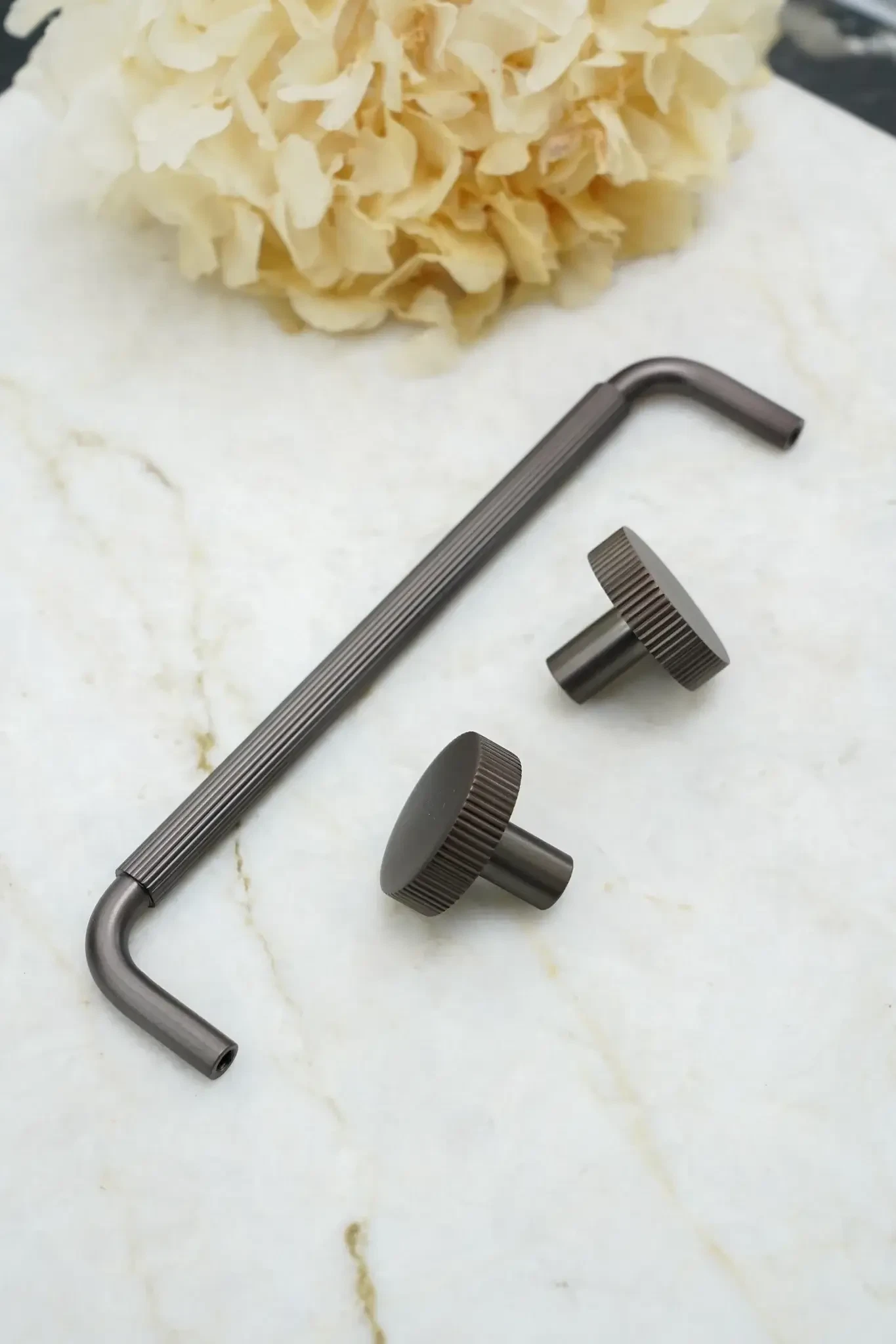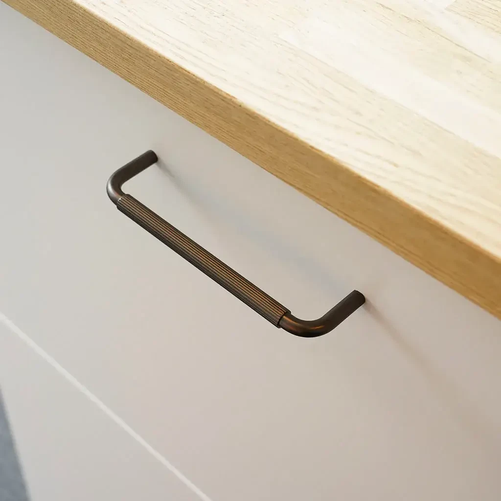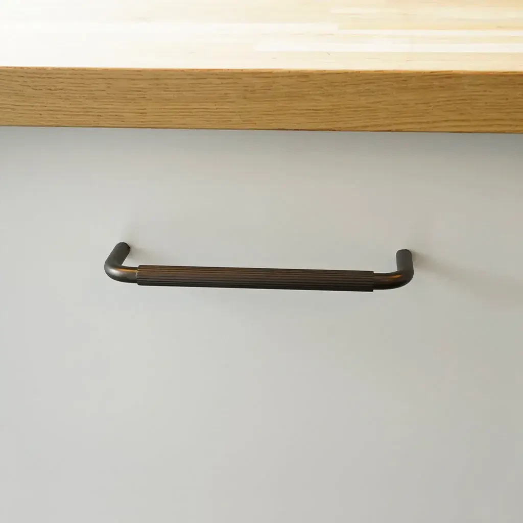 Dette greb matcher vores Langelinie knop, som begge har den linjerede overflade. Ved at kombinere de to designs i f.eks. dit køkken, skaber det et stilrent udtryk, som drager øjet og samtidig skaber ro og helhed i indretningen.