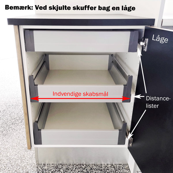 Vigtigt hvis du bestiller skjulte skuffer, som skal sidde bag en låge: