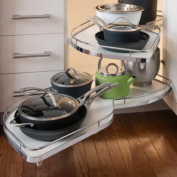 LeMans karrusellen er den geniale løsning, der bringer indholdet af dit lige hjørneskab, ud til dig, så du straks kan løfte det ud, som du skal bruge. Har du et lige hjørneskab med et ubrugt hjørne, kan du derfor optimere dit køkkens opbevaringsplads i stor grad med dette hjørneskabsudtræk.